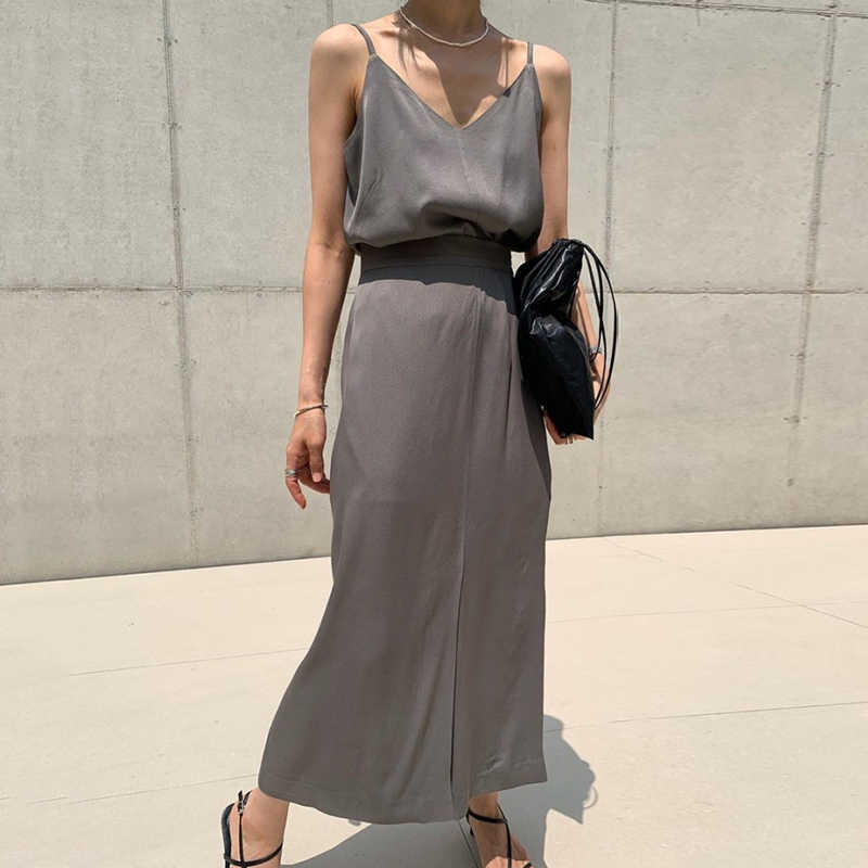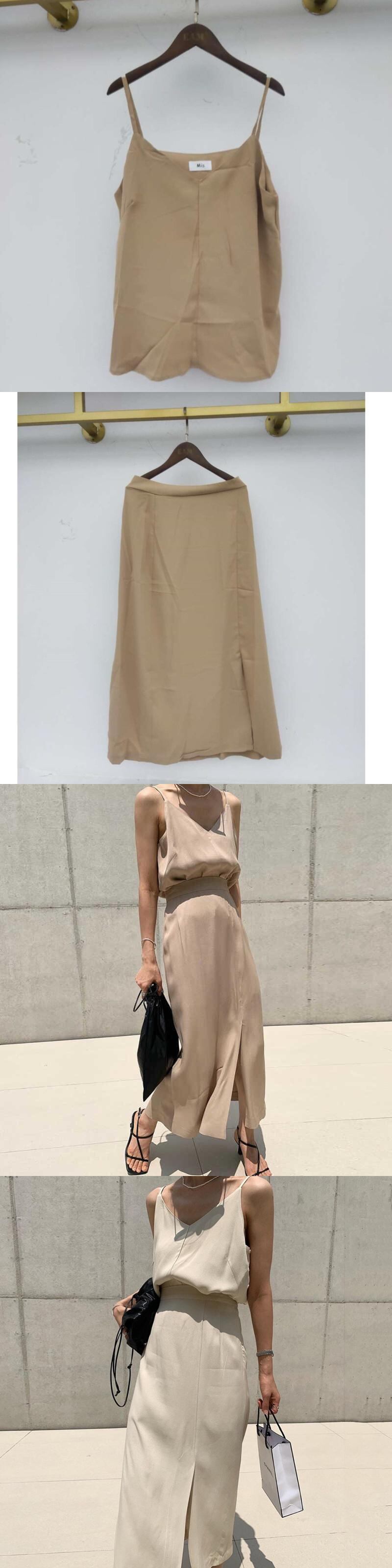 [EWQ] シックトレンディ V ネック ノースリーブ サスペンダー トップ + ルーズ スカート 2 点セット夏 16E1757 サマー 夏物 Vネック