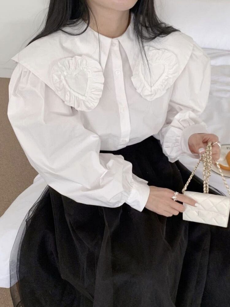 [EWQ] ピーターパン襟パッチワークラブシャツ長袖無地トップ春秋ブラウストップス 863 ロング スプリング 春物 オータム 秋物 ソリッドカラー