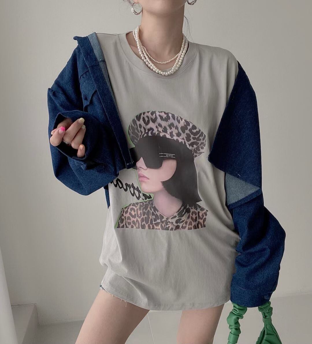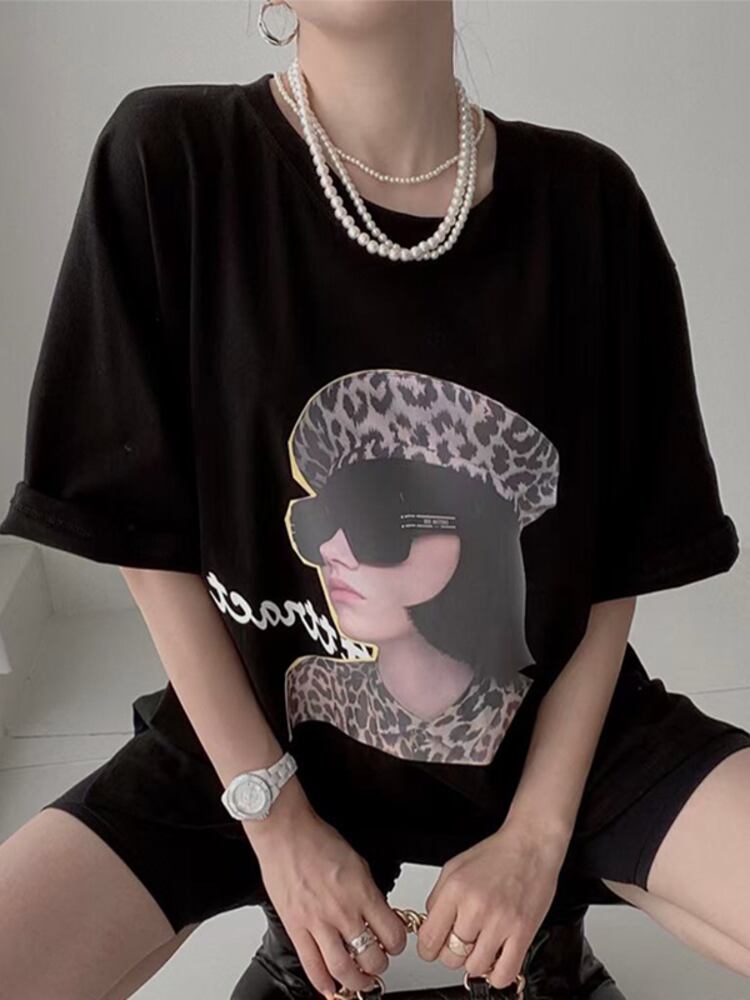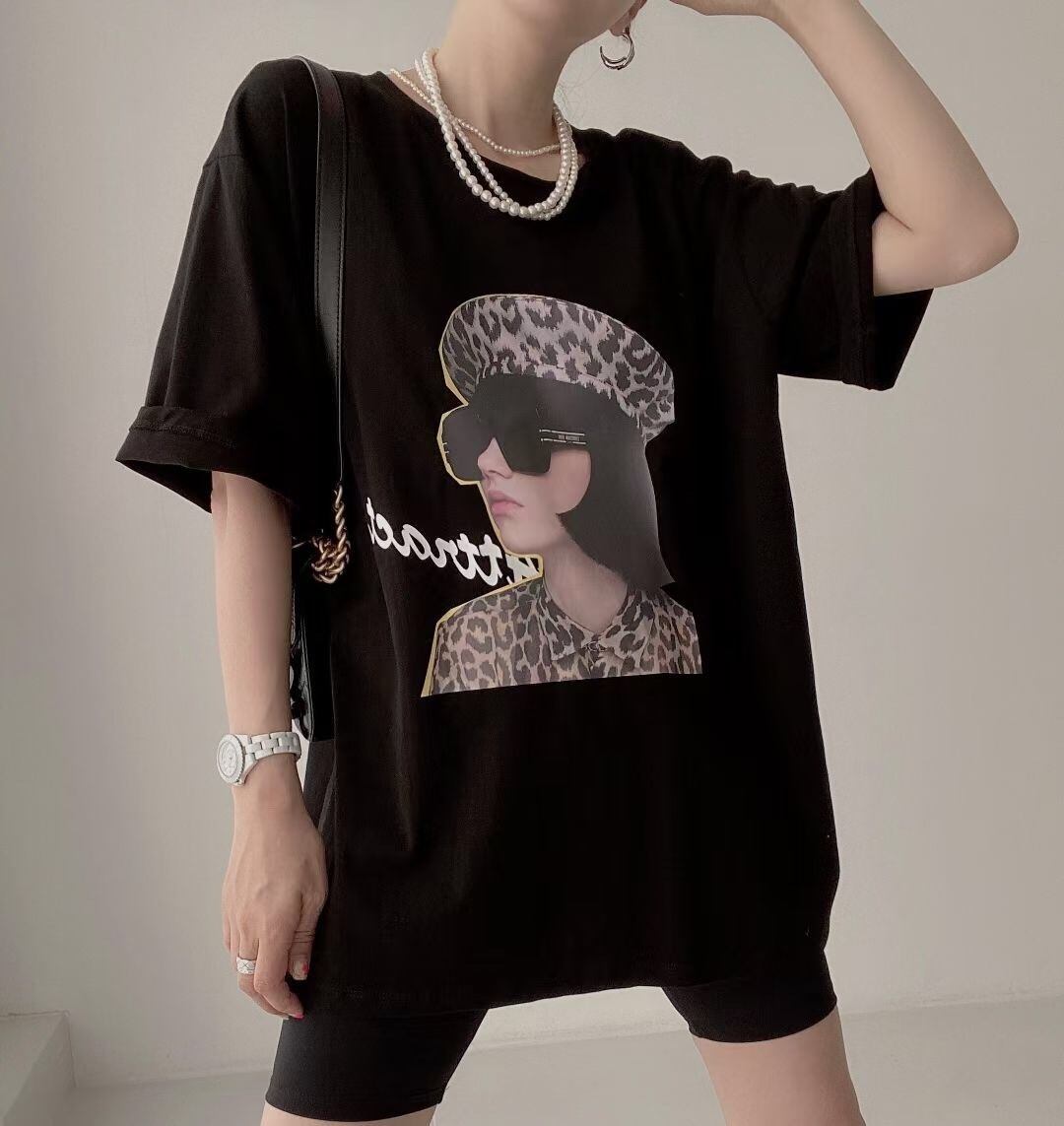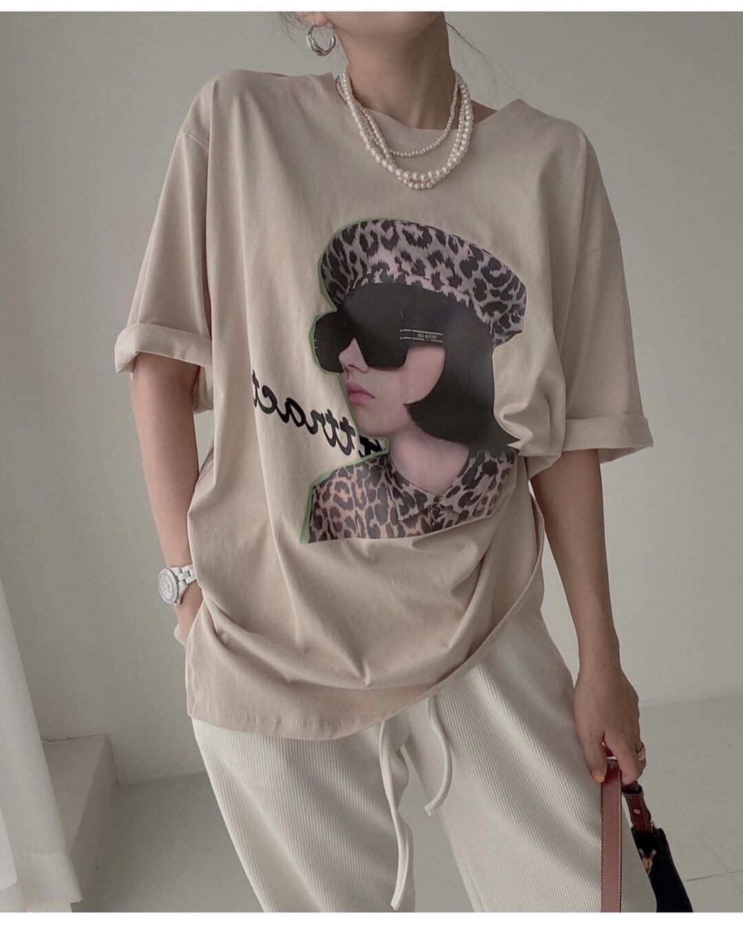 [EWQ] レディース レタープリント コントラスト Tシャツ 半袖 ルーズ 因果 Oネック Tシャツ トップス サマーTシャツ トップス 16Y8404 ショート ハーフスリーブ 夏物