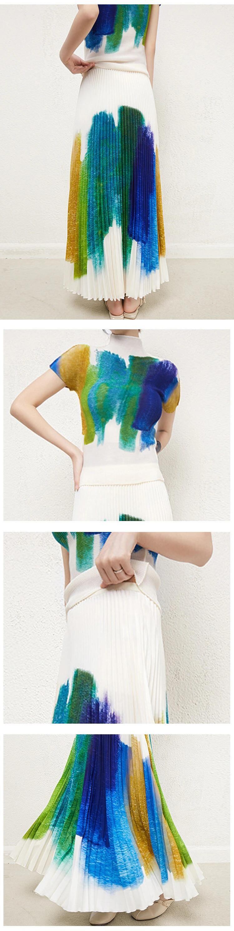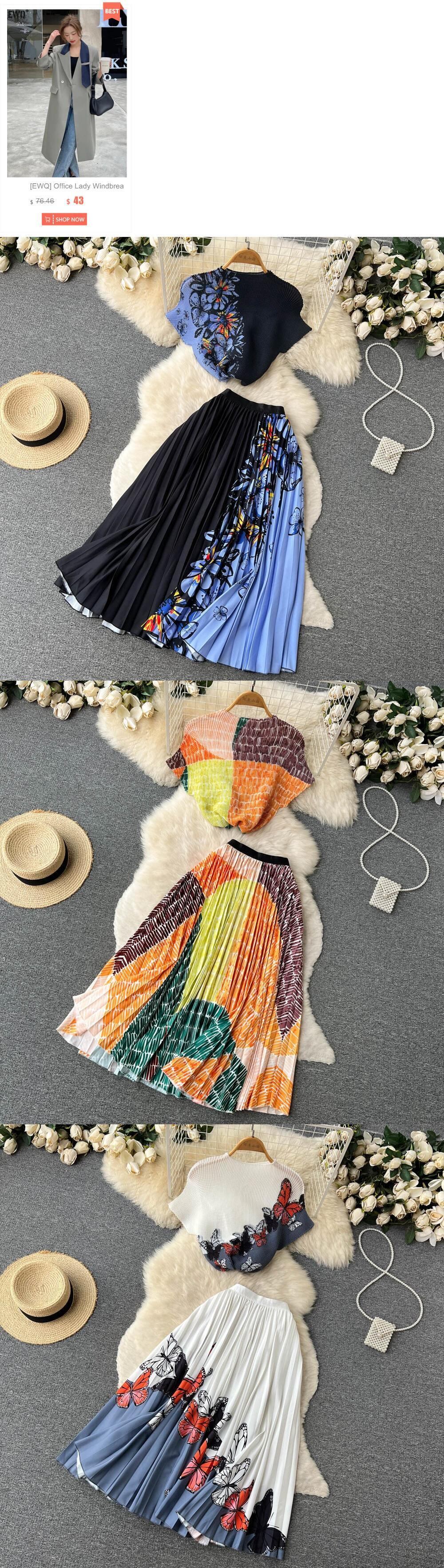 【EWQ】半袖 配色シャツ+ウエストプリーツ レディース スカート 2点セット 夏 キレイめ パーティー ショート ハーフスリーブ サマー 夏物