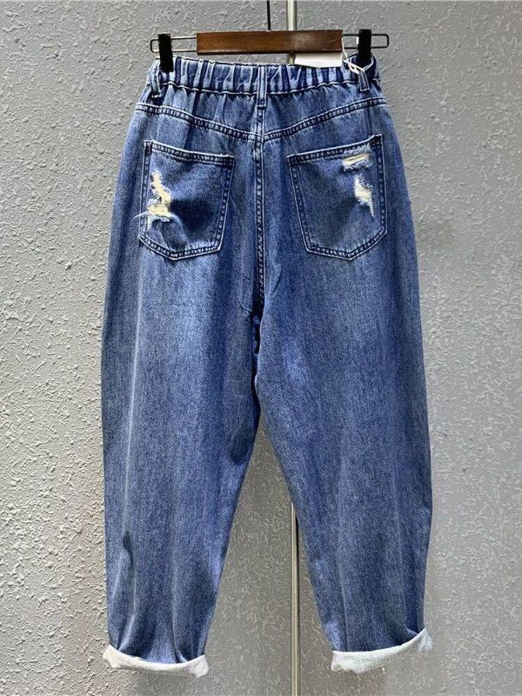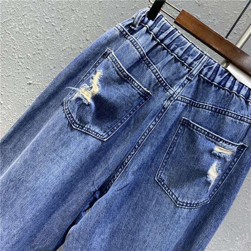 [EWQ] ポケット中空アウトデニムパンツストリートウエストパッチワークワイドレッグパンツ春夏ジーンズ スプリング 春物 サマー 夏物 ワイドパンツ