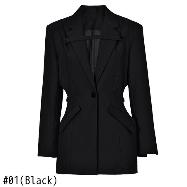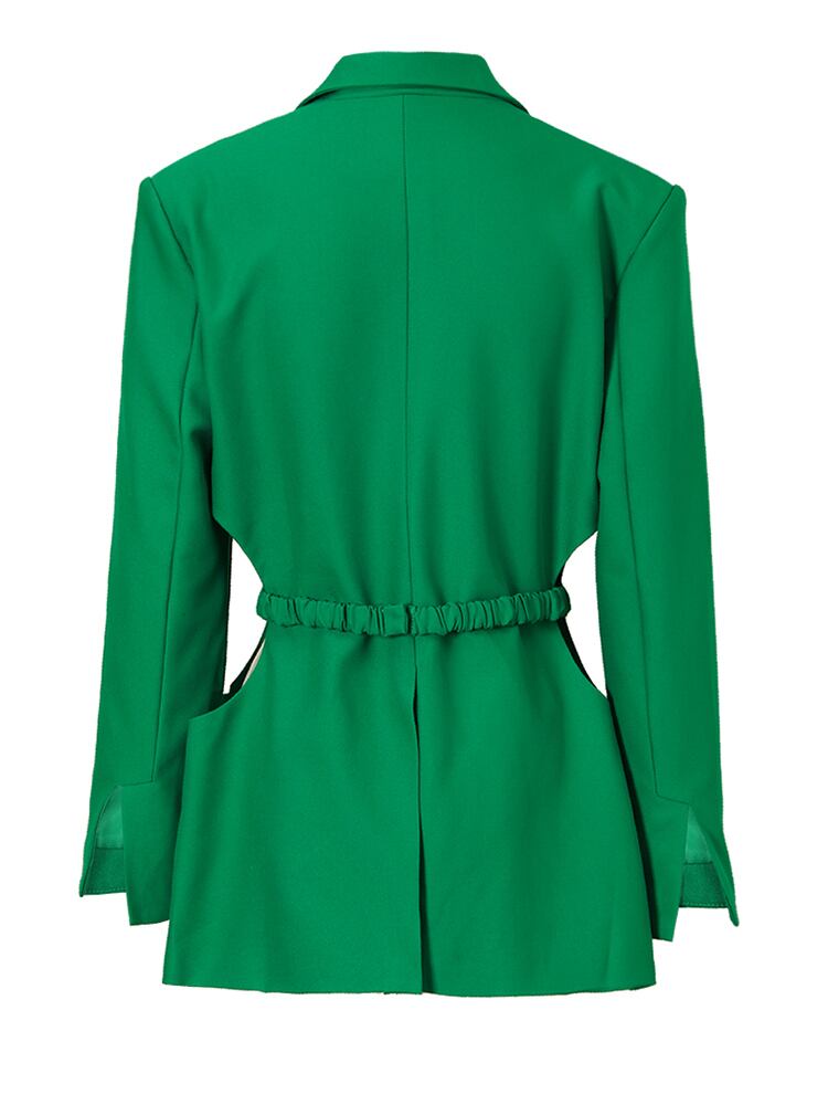[EWQ] レディース グリーン ウエスト くり抜き型 ビッグサイズ ブレザー ラペル 長袖 ジャケット 春 秋 ロング スプリング 春物 オータム 秋物
