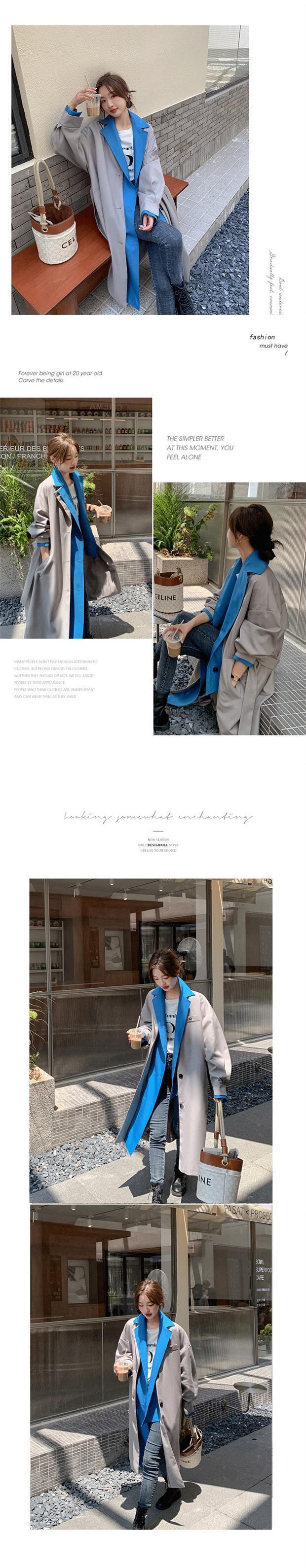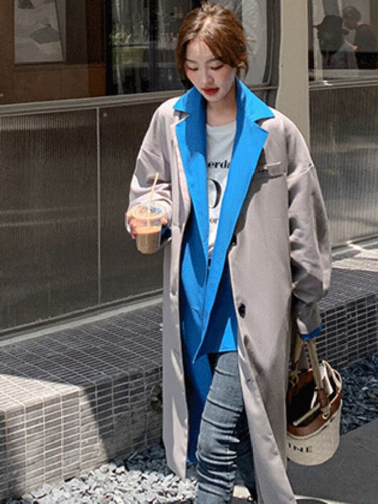 【EWQ】長袖 トレンチコート アウター フェイクツーピース トレンド レディース ウインドブレーカー ソリング 秋 ゆったり ロング オータム 秋物