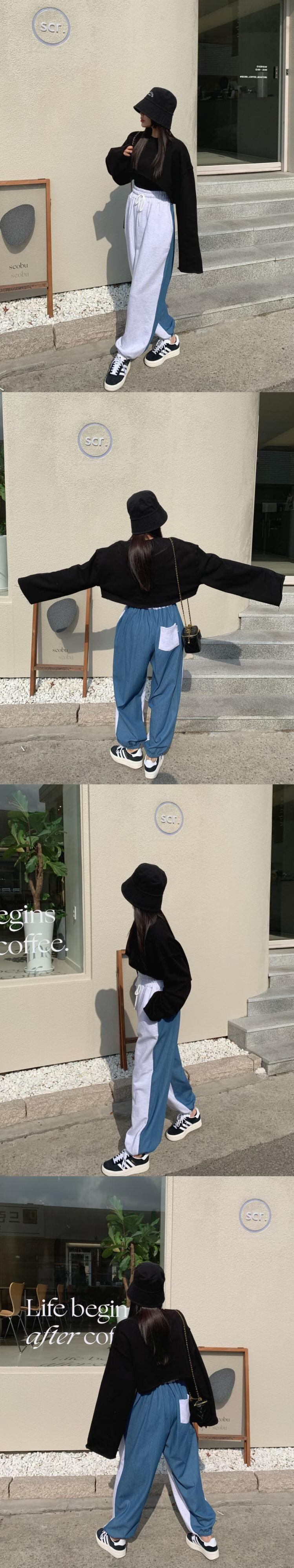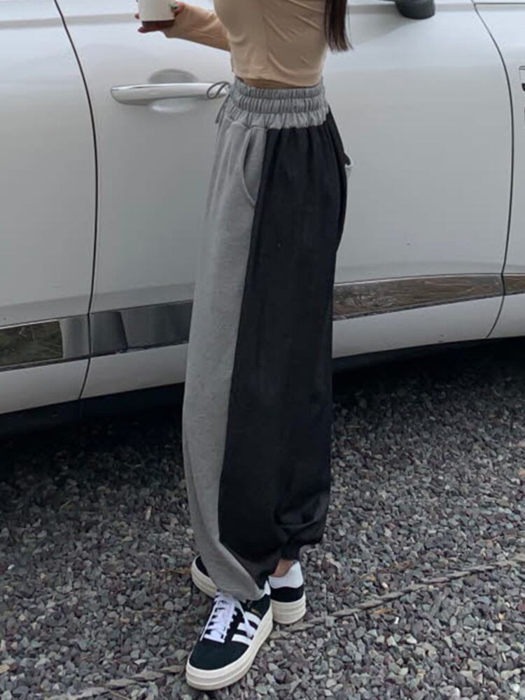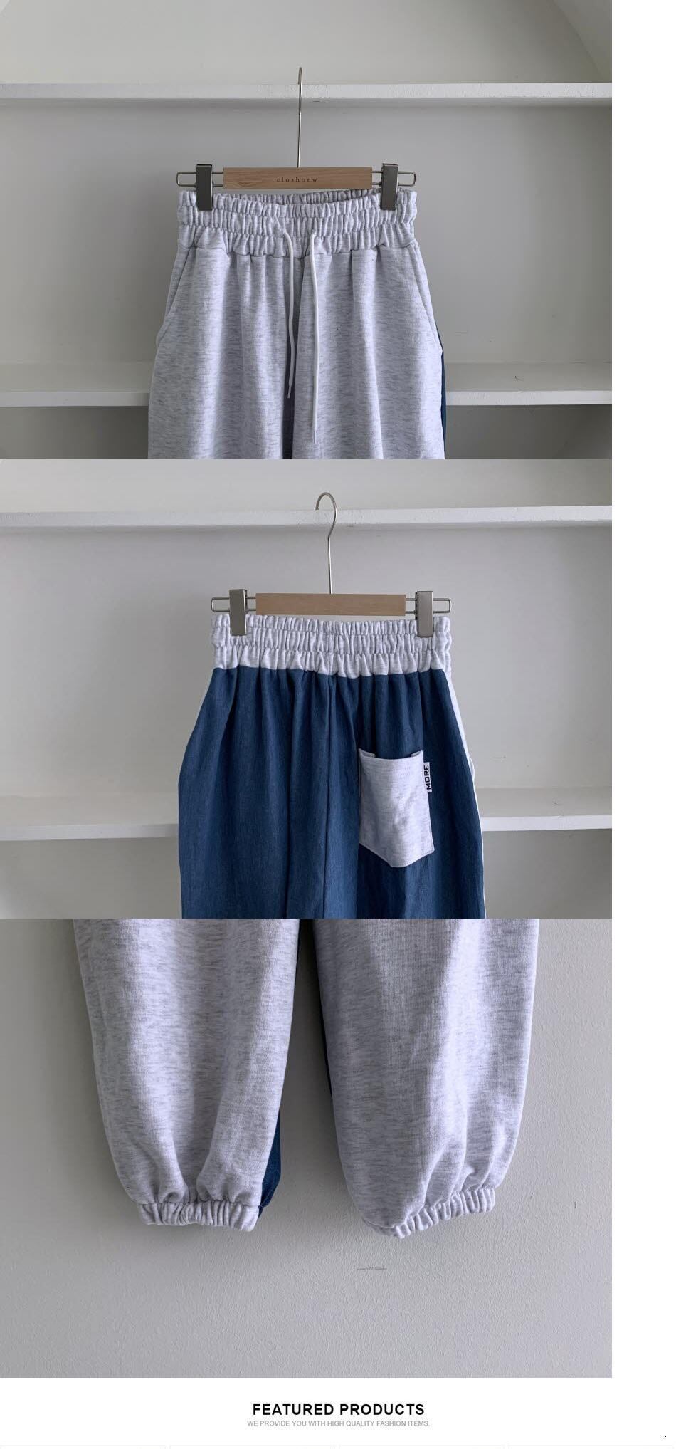 [EWQ] ドローコード コントラスト カラー ジーンズ ストリート ウエスト ポケット デニム パッチワーク ズボン春夏パンツ 784 スプリング 春物 サマー 夏物