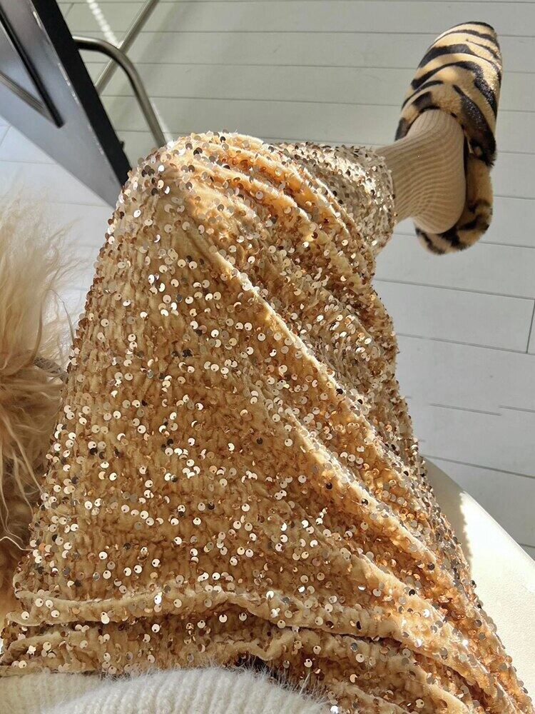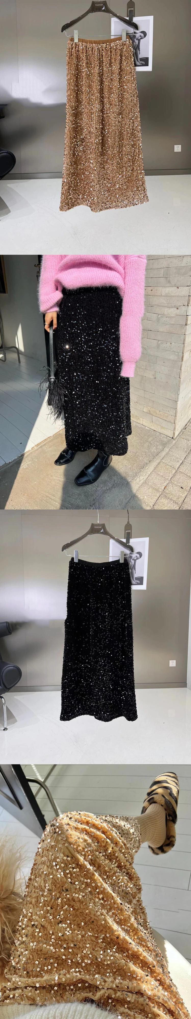 [EWQ] レディース スパンコール Aライン スカート 春 冬 ベルベット 太ウエスト スリム シック スカート 16Y5395 スプリング 春物 ウィンター 冬物