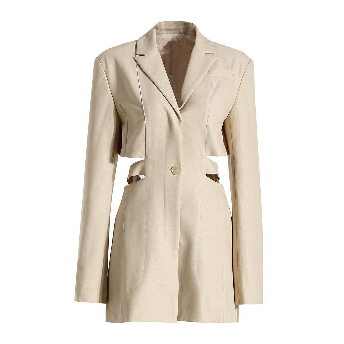 【EWQ】長袖 ジャケット カットアウト オープンウエスト ワンボタン スーツ ブレザー レディース アプリコット コート 春 16Y2179 ロング スプリング 春物