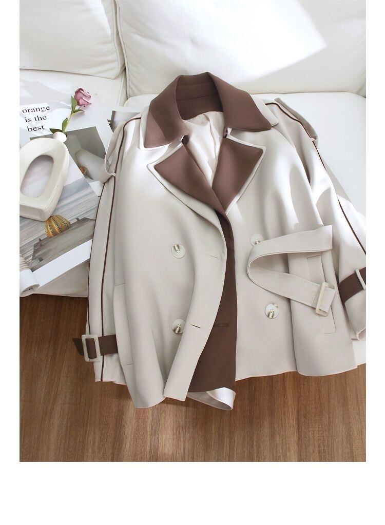 [EWQ] パッチワーク ウインドブレーカー レディース 春 冬 レースアップ ウエスト 長袖 二重襟 フェレーム オーバーコート 16Y4763 ロング スプリング 春物 ウィンター 冬物