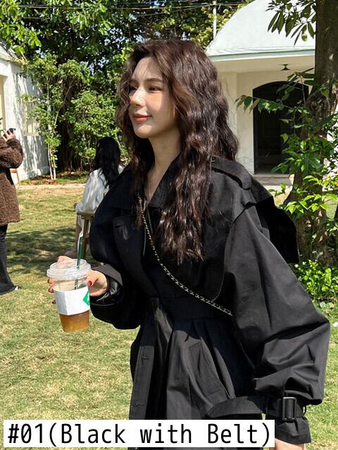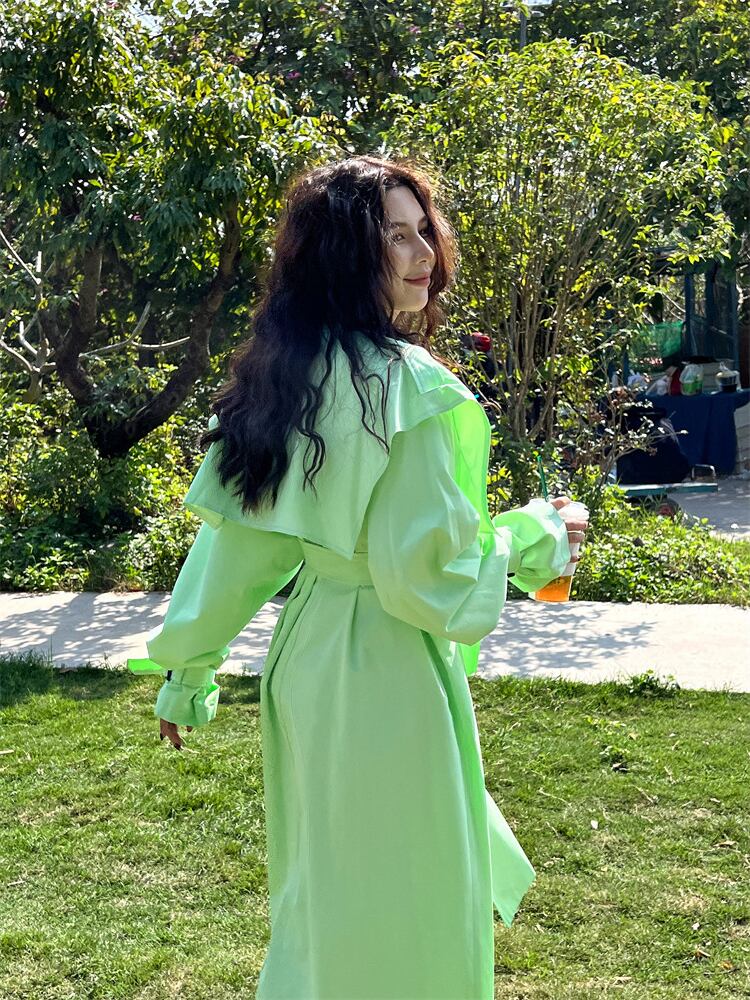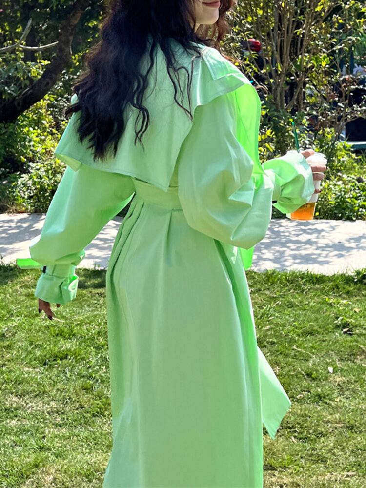 [EWQ] グリーン ダブル ブレスト ウインドブレーカー ジャケット春秋潮ベルト トレンチ コート生き抜く 16Y7348 スプリング 春物 オータム 秋物 ハーネス