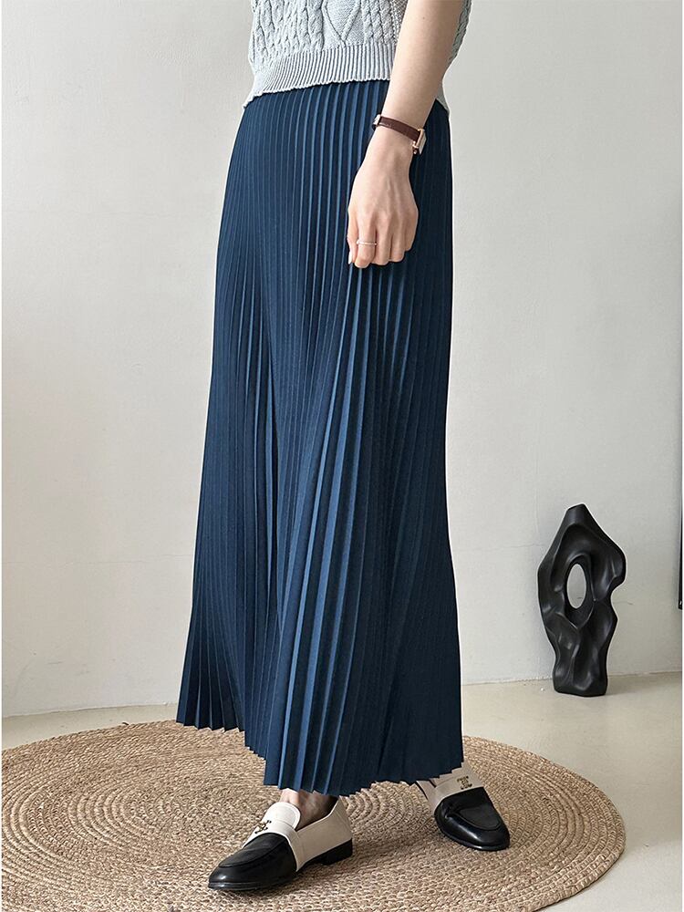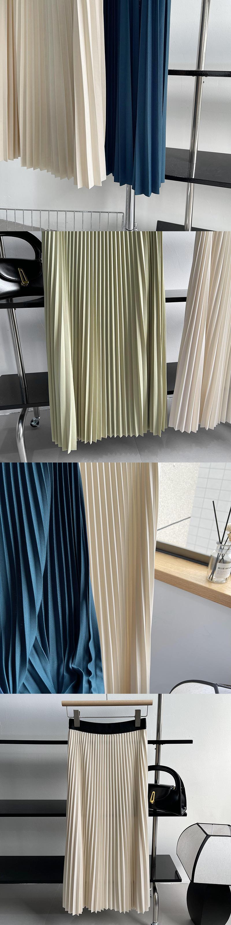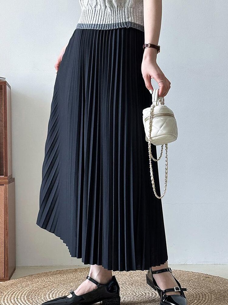 [EWQ] プリーツ弾性ウエストスカート無地ミッドカーフスカート春夏ルーズファルダオールマッチ服 エラスティック 伸縮 スプリング 春物 サマー 夏物 ソリッドカラー