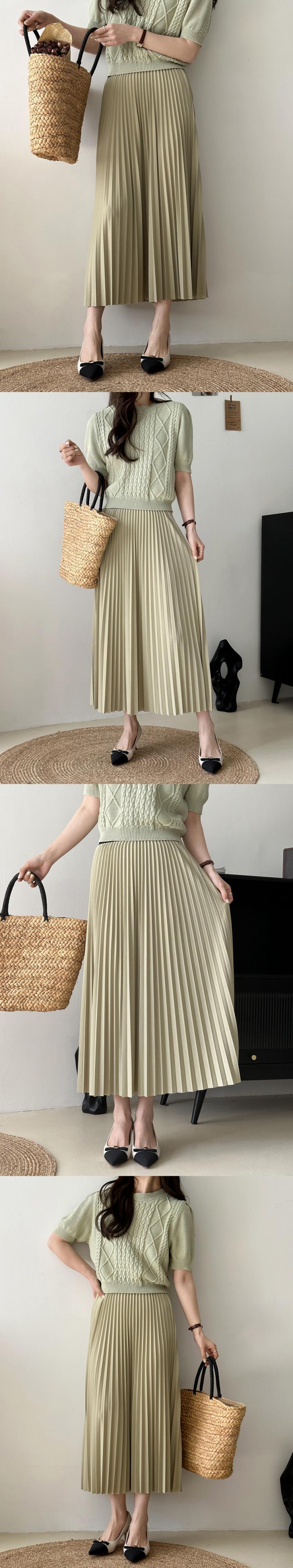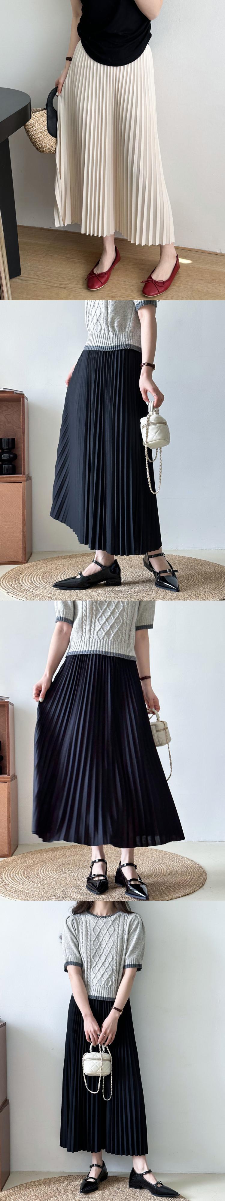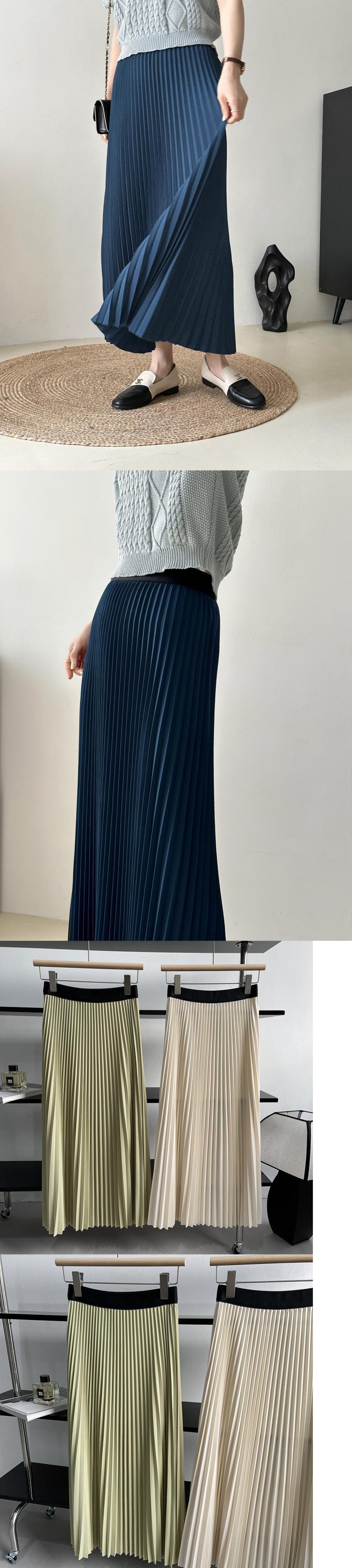 [EWQ] プリーツ弾性ウエストスカート無地ミッドカーフスカート春夏ルーズファルダオールマッチ服 エラスティック 伸縮 スプリング 春物 サマー 夏物 ソリッドカラー