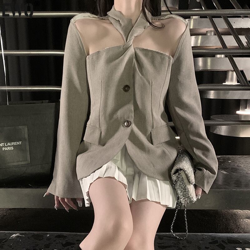 【EWQ】カットアウトブレザー レディース ノッチカラー 長袖 シングルブレスト ブレザー 夏 春 秋 ロング スプリング 春物 サマー 夏物 オータム 秋物
