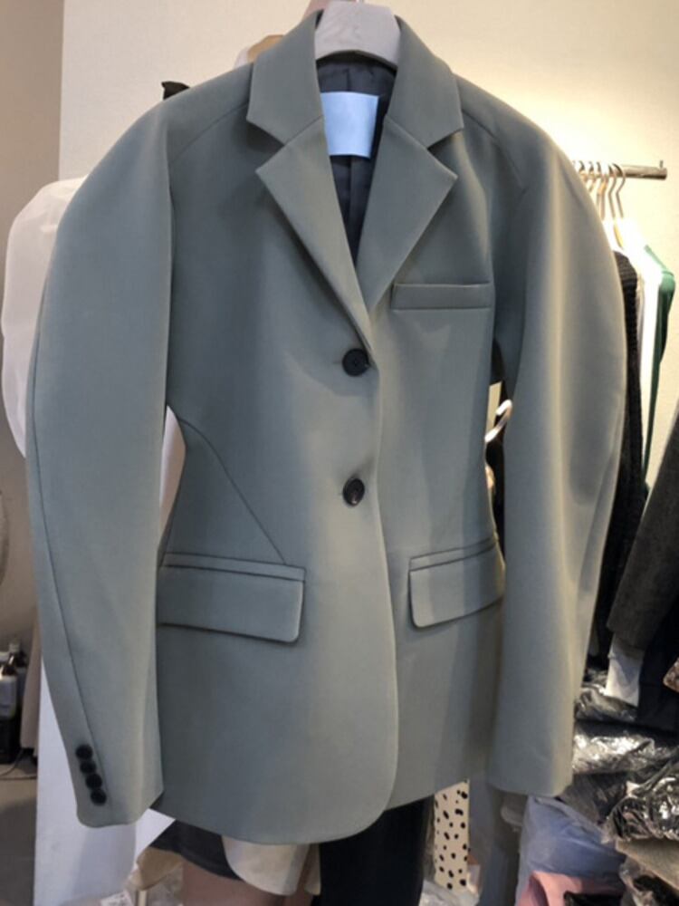 【EWQ】OL 長袖 スリムウエスト ブレザー コート レディース 長袖 無地 シングルブレスト スーツ ジャケット 春物 ロング スプリング ソリッドカラー 会社 学校 通勤や通学にも