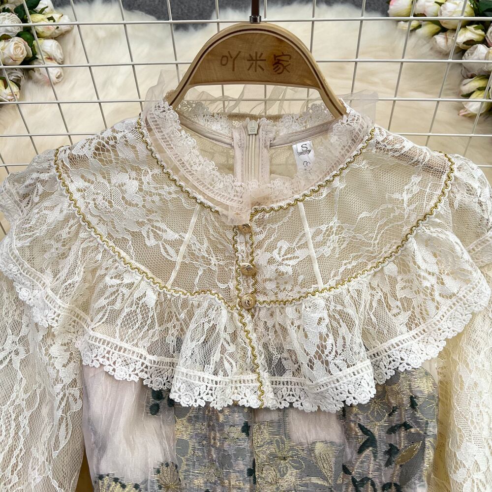 [EWQ] ジャカードドレスレースフックフラワーコントラストカラーパーティー A ラインドレス春夏潮服 7851 スプリング 春物 サマー 夏物 Aライン フラワーデザイン