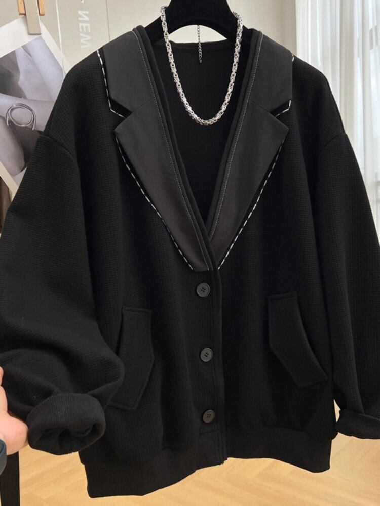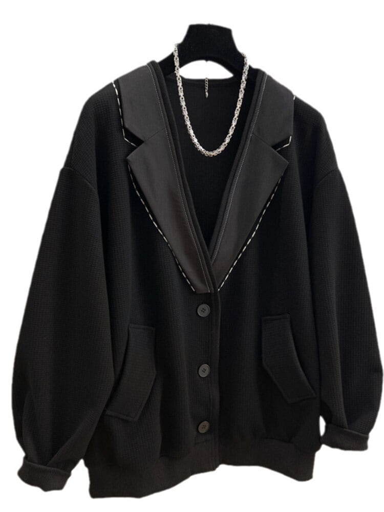 【EWQ】ストリート レディース 長袖 Vネック ジャケット スプリングライン スプライシング シングルブレスト コート キレイめアウター 16Y564 ロング 春物