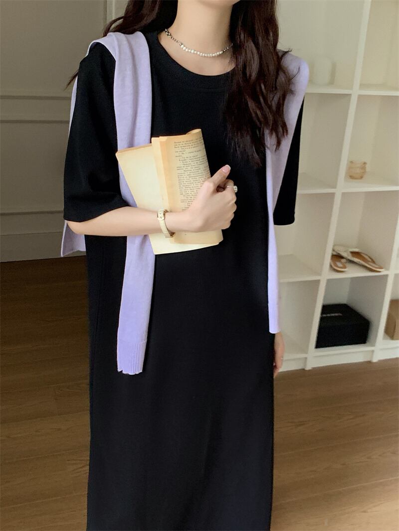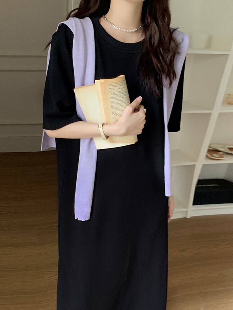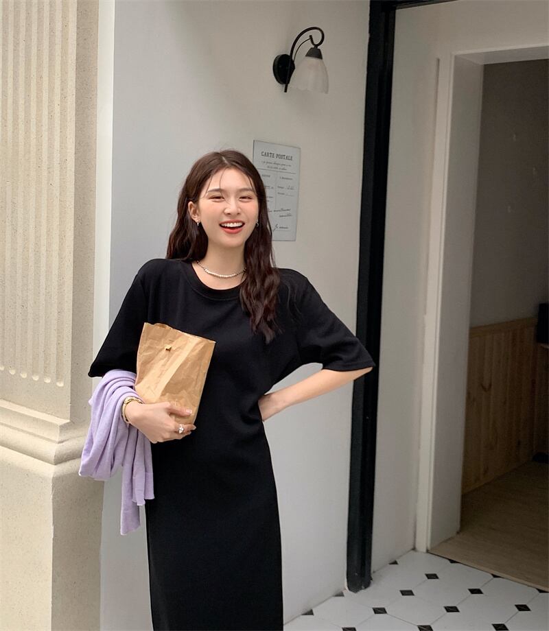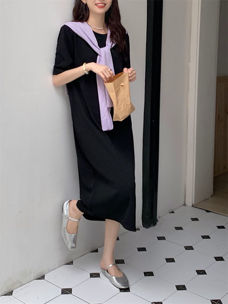 【EWQ】 無地 半袖 Tシャツ ドレス レディース Oネック シンプル ブラック ドレス 春夏 Vestido 6Y7024 ショート ハーフスリーブ スプリング 春物 サマー 夏物 ソリッドカラー