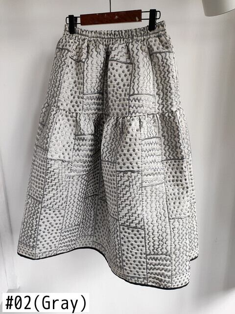 [EWQ] 秋ストライプ ジャカードウエスト フォールド ミッドカーフ A ライン バブル スカート潮 16R1486 オータム 秋物 Aライン