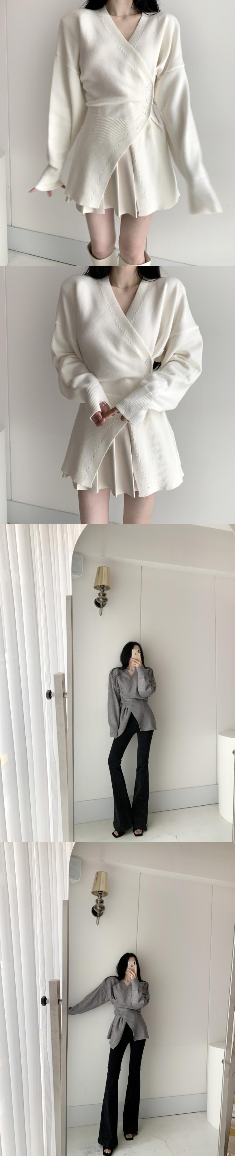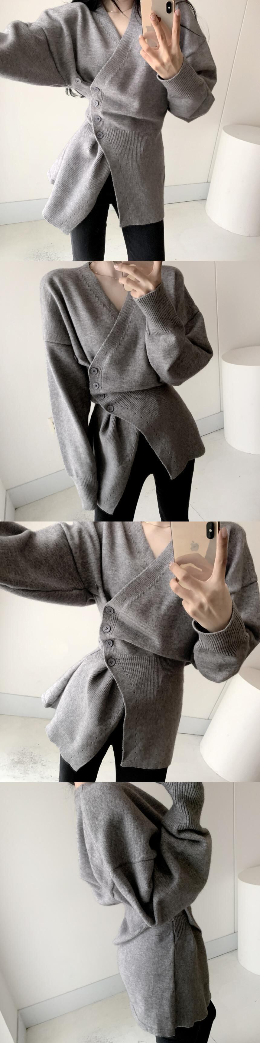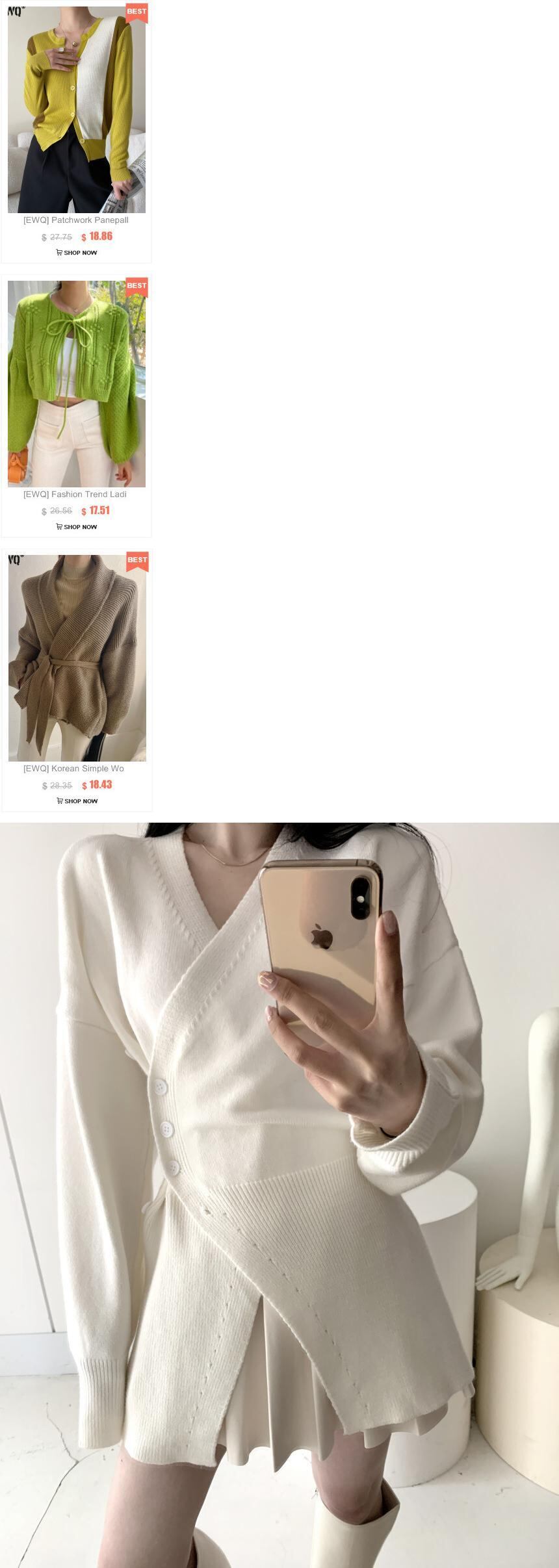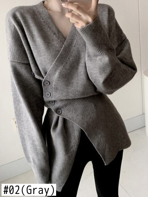 [EWQ] 不規則ニットセーター V ネック長袖スリムシックグレートップス生き抜く秋冬 Y476 ロング オータム 秋物 ウィンター 冬物 Vネック