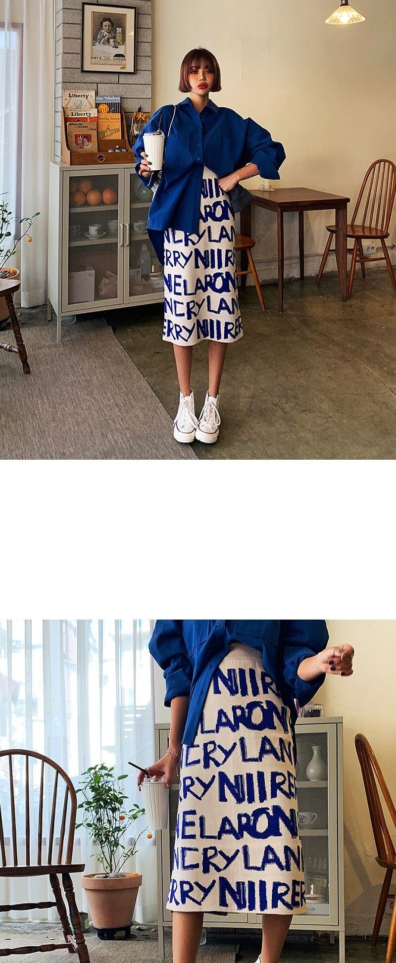 【EWQ】スリット レター ニット スカート ウエスト オールマッチ トレンド レディース シック ボトム 16W159120