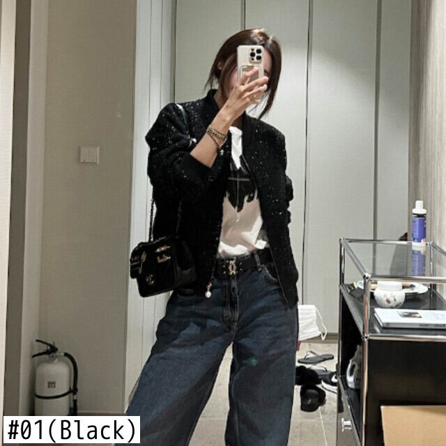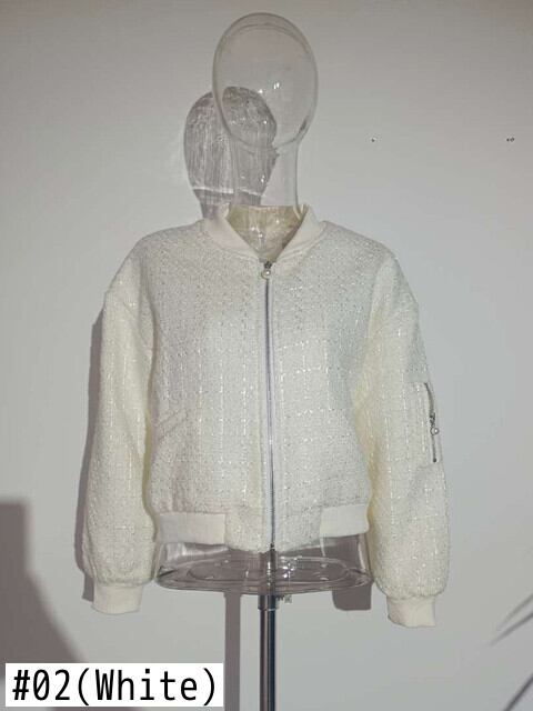 [EWQ] ポケット O ネック ジッパー ツイード ウール ジャケット長袖ウール ブレンド ジャケット コート春秋 909 ロング スプリング 春物 オータム 秋物 Oネック