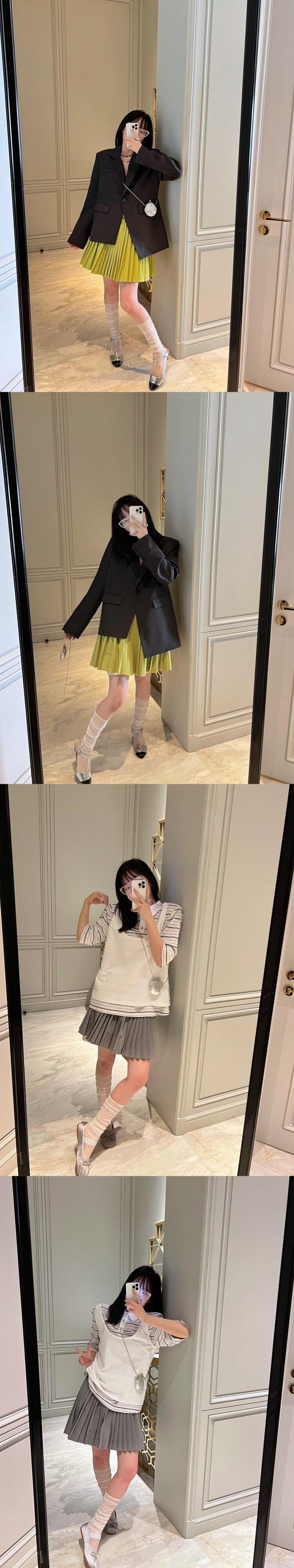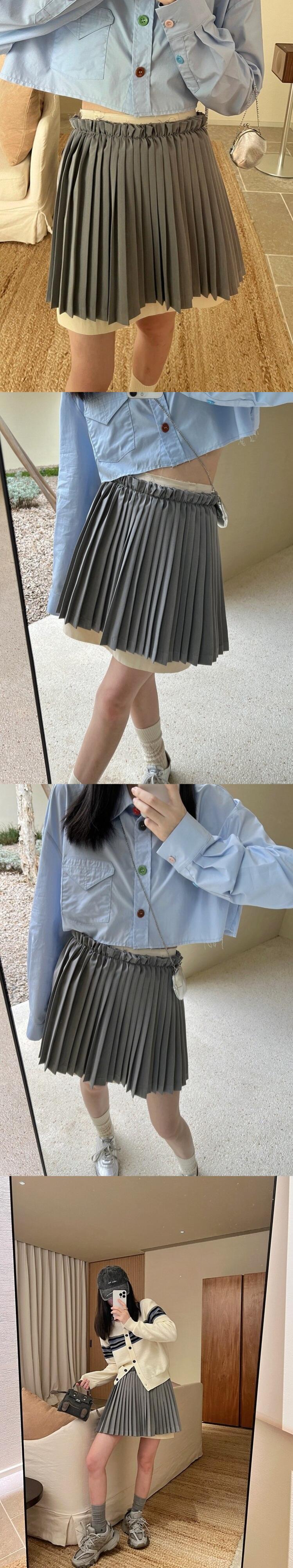 [EWQ] ルース プリーツ パッチワーク ミニ スカート夏弾性ウエスト グリーン ショート スカート ファルダス 7230 エラスティック 伸縮 サマー 夏物