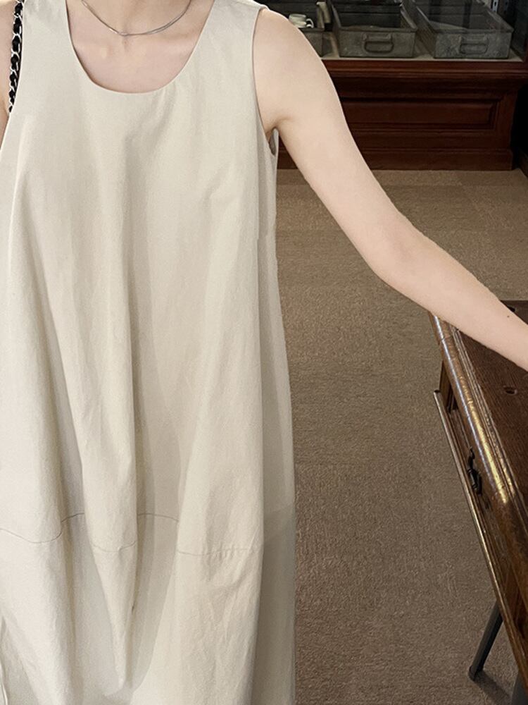 [EWQ] ノースリーブシンプル無地ドレスマキシドレス春夏プリーツウエスト Vestido 16Y6518 スプリング 春物 サマー 夏物 ソリッドカラー