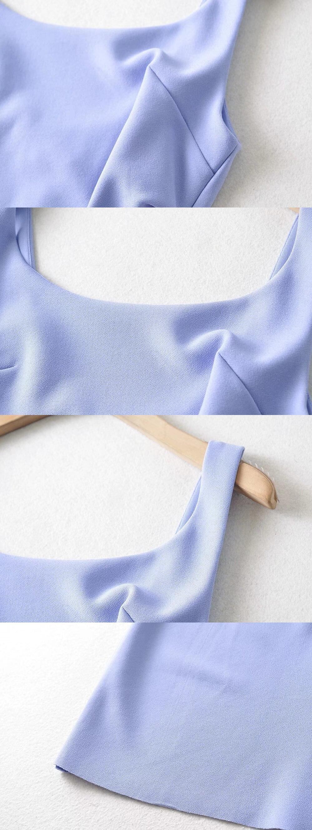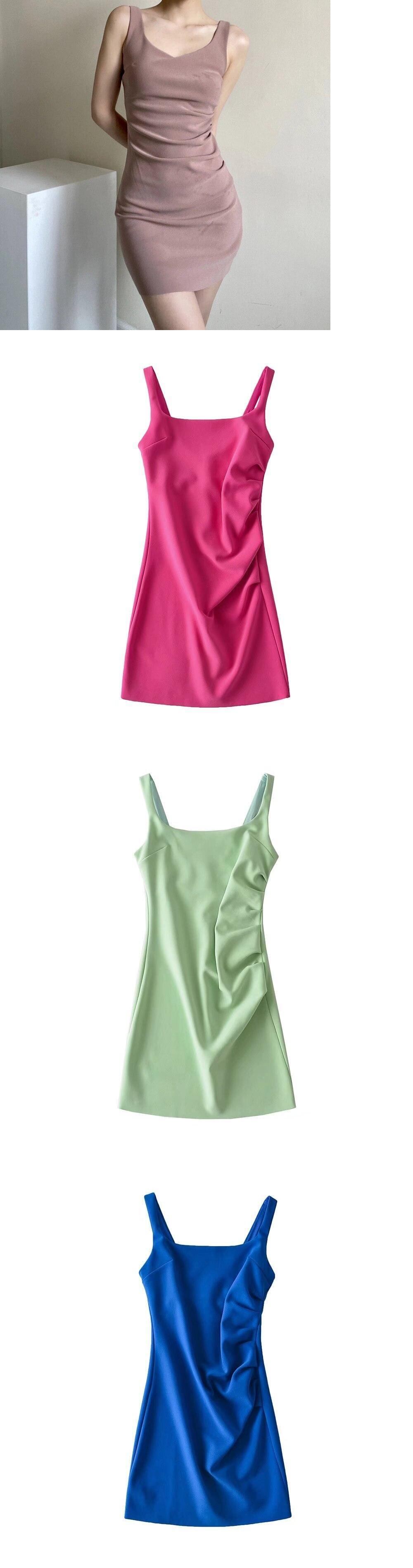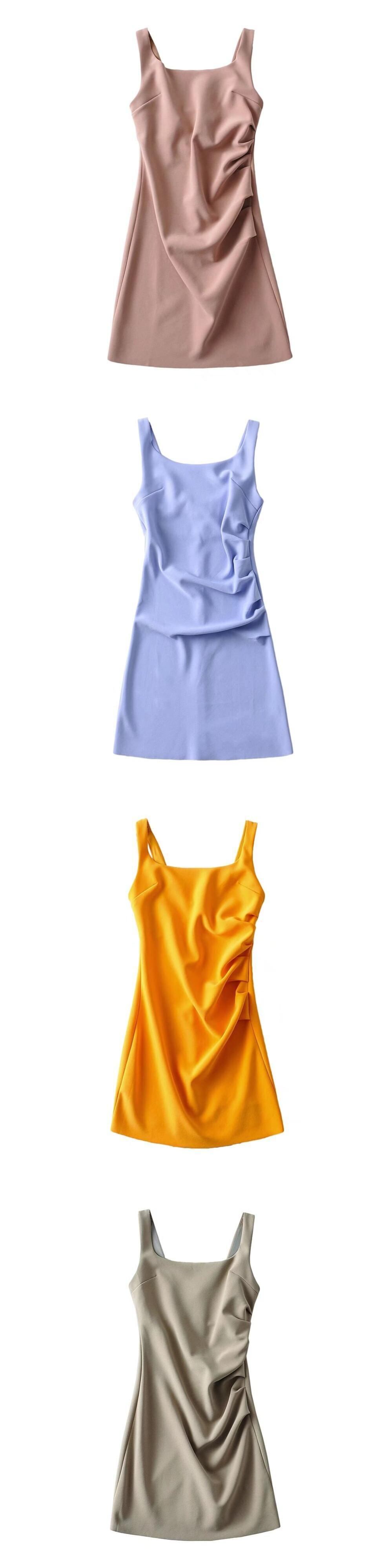[EWQ] プリーツ無地スリング ドレス セクシービーチ ホリデー ノースリーブ Vestido 春夏 Vestidos スプリング 春物 サマー 夏物 ソリッドカラー