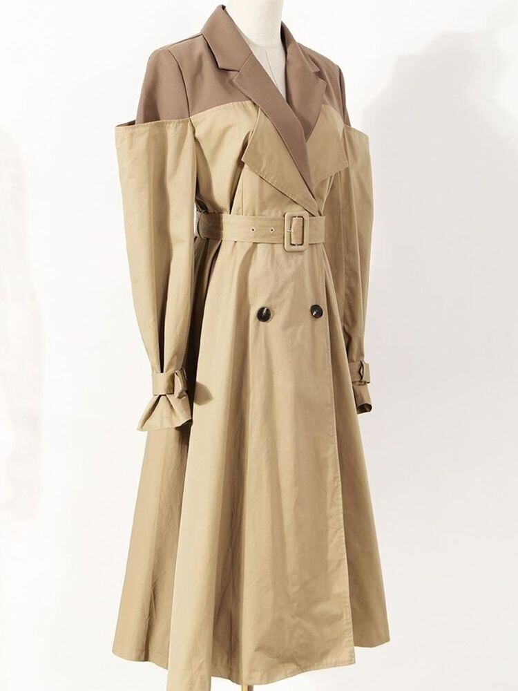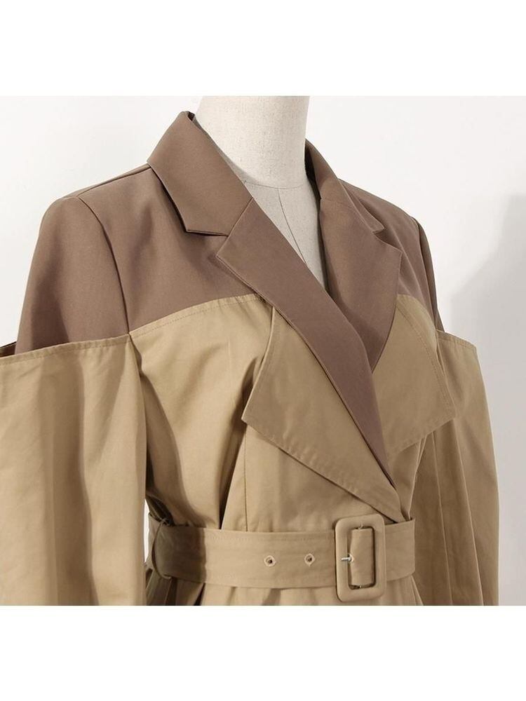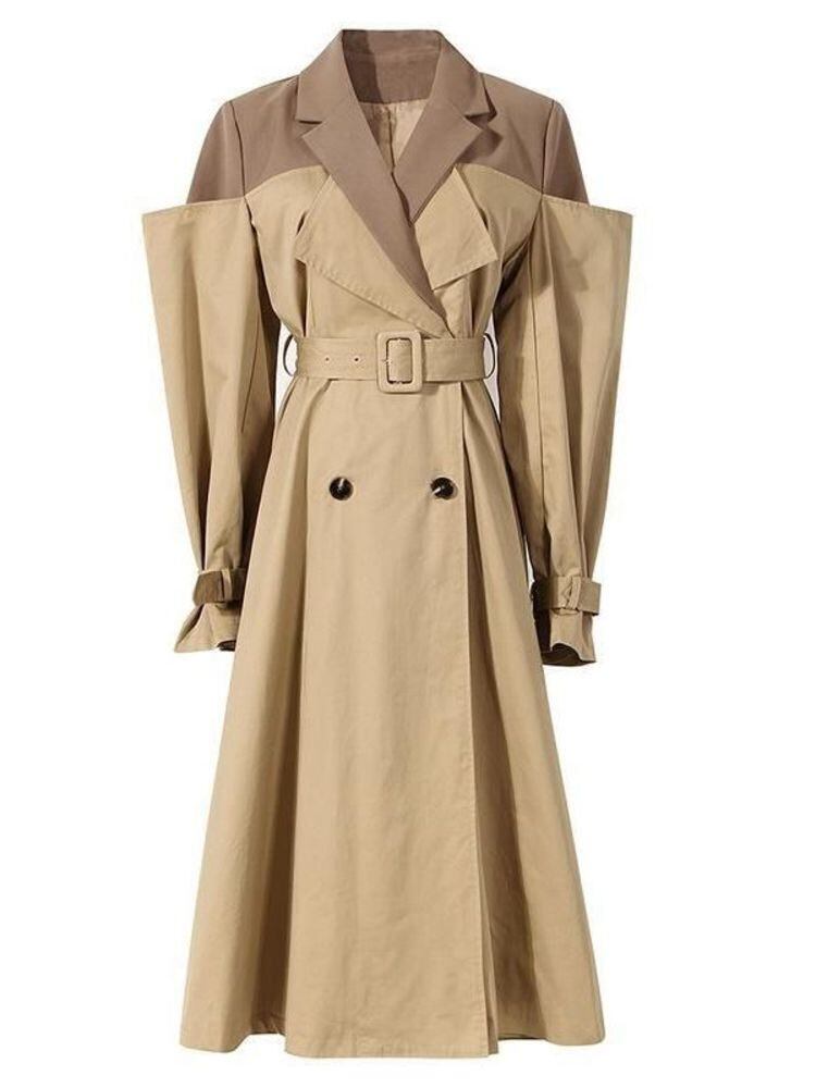 [EWQ] レディース コントラストカラー ベルト ウインドブレーカー コート パッチワーク 長袖 トレンチ ジャケット アウター 春 秋 Y7584 ロング スプリング 春物 オータム 秋物 ハーネス