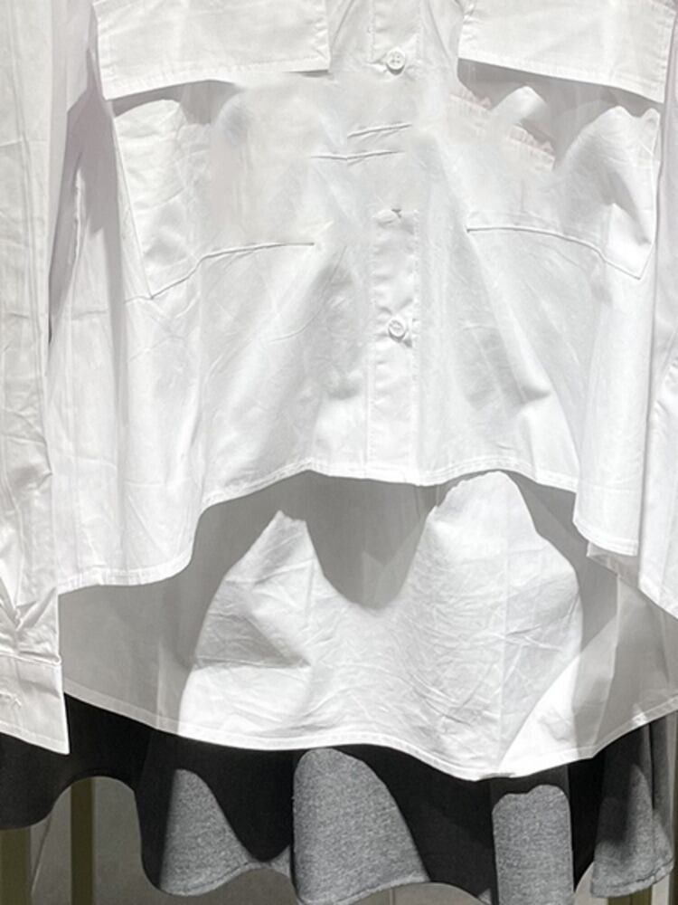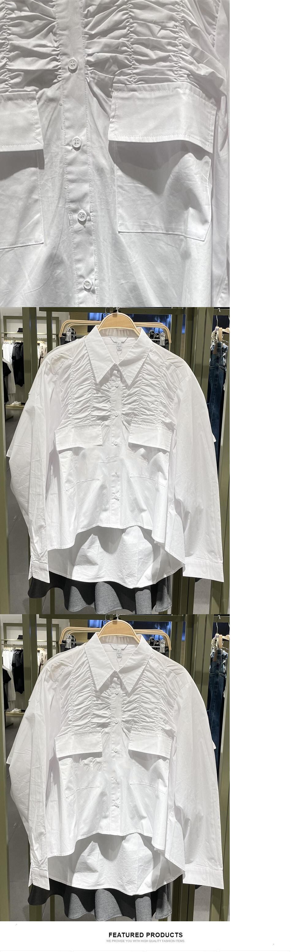 [EWQ] レディース アシンメトリー シングルブレスト シャツ 長袖 プリーツ オーバーサイズ ブラウス 春 秋 タイド トップ 16Y8147 ロング スプリング 春物 オータム 秋物