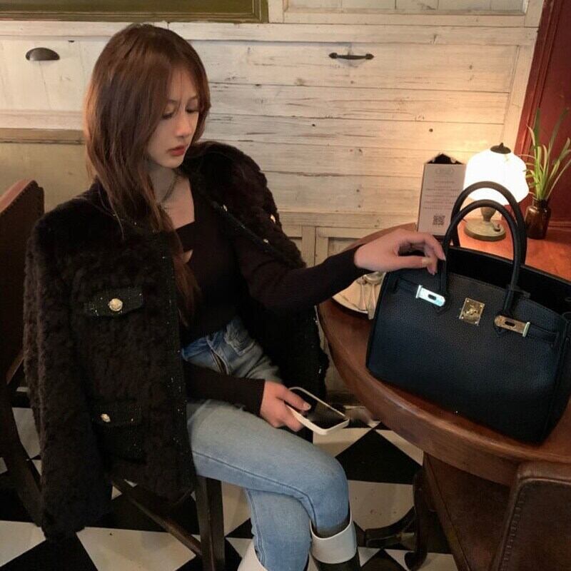 [EWQ] 美しいラムウールコートストリート O ネックフェイクファージャケット春冬厚く暖かい豪華コート スプリング 春物 ウィンター 冬物 Oネック
