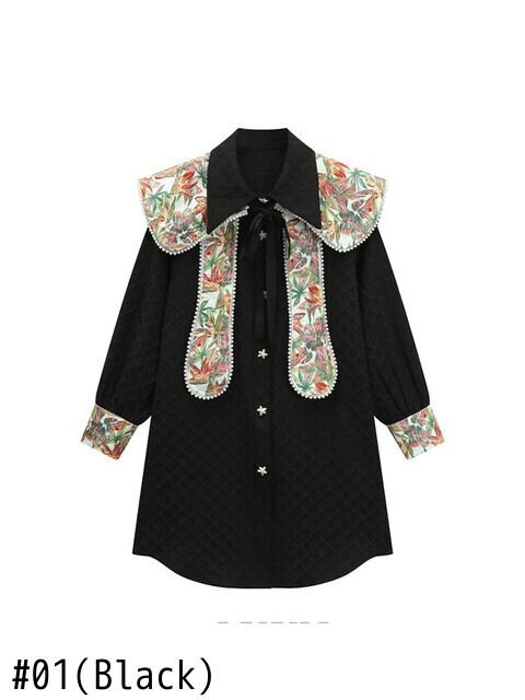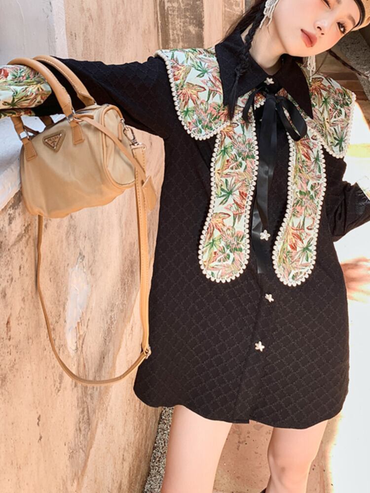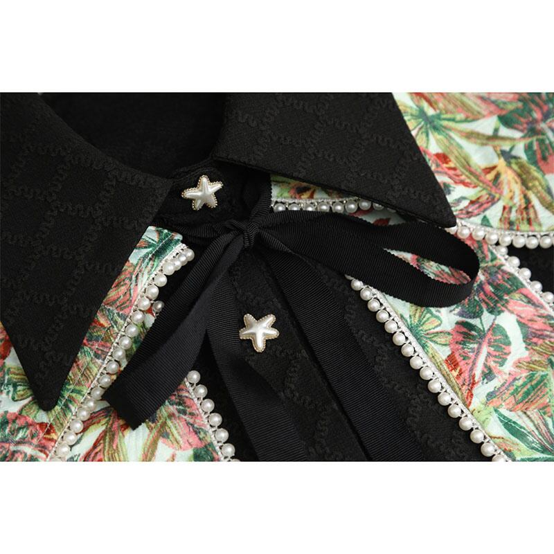[EWQ] パール プリント ショール ラペル カラー シャツ ドレス シックボタン ドレス シングル ブレスト春潮 Vestido スプリング 春物 真珠