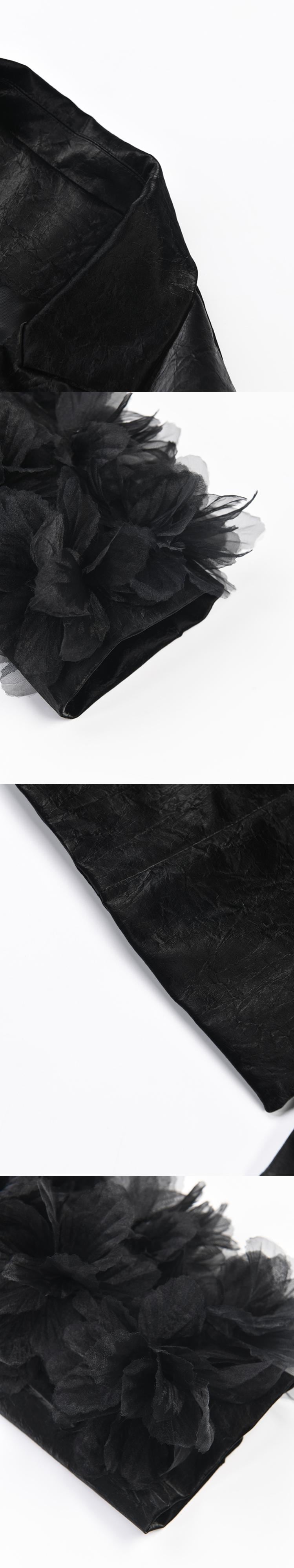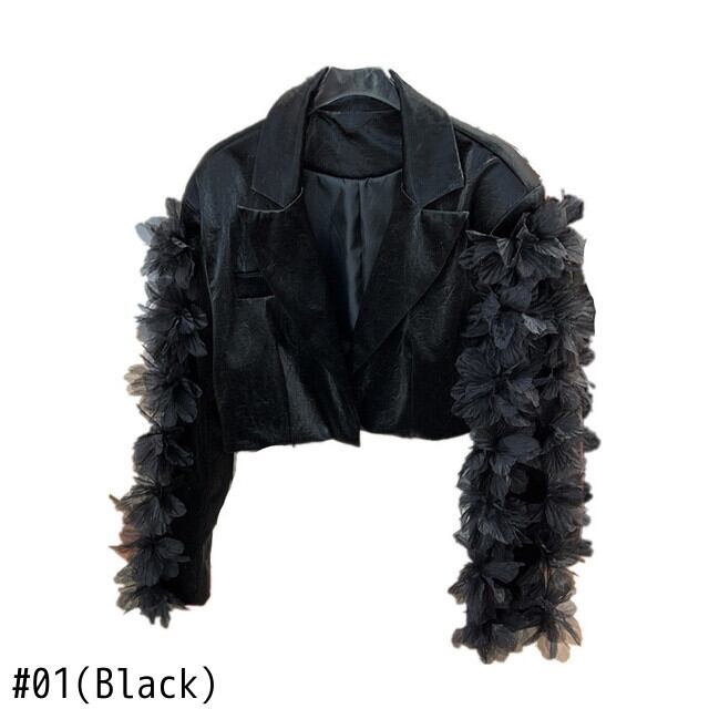 【EWQ】花びら飾り ゆったり ショート スーツカラー レザーコート レディース トレンド レディース ショート PU ジャケット