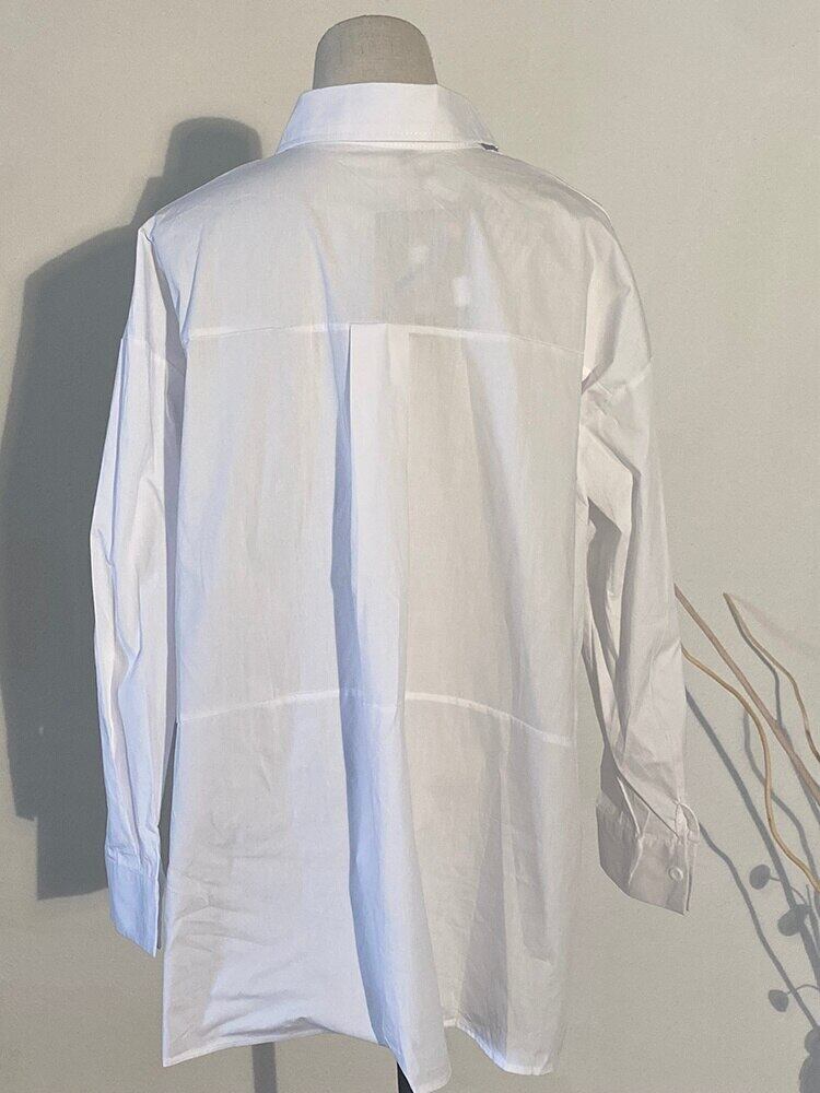 【EWQ】ラペル 長袖 無地 シャツ レディース ゆったり 大きいサイズ イレギュラー ブラウス トップス 潮 春 秋 7457 ロング スプリング 春物 オータム 秋物 ソリッドカラー