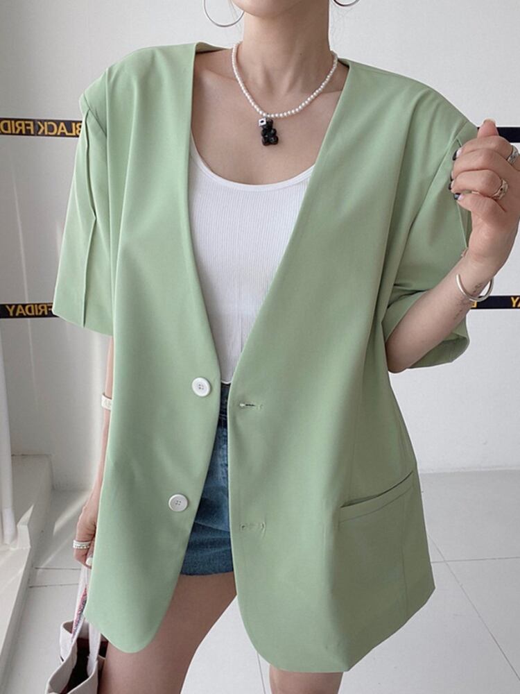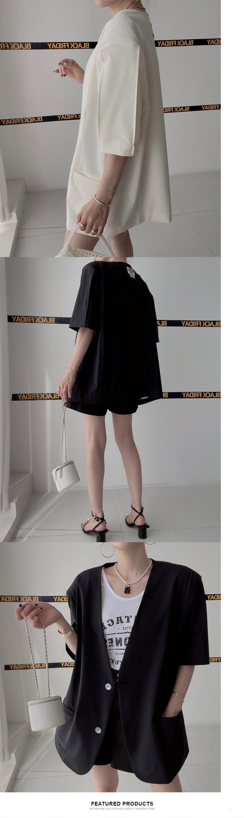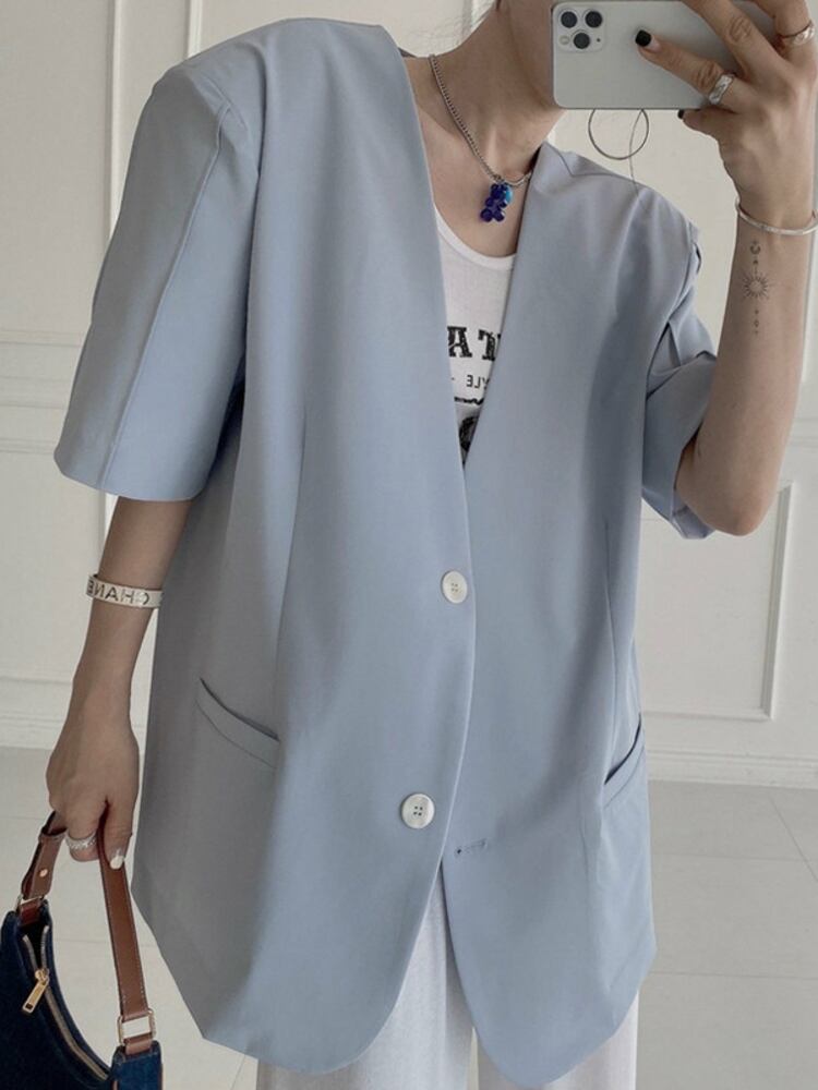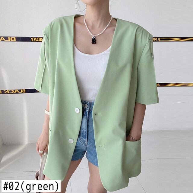 【EWQ】シングルブレスト ブレザー コート レディース 半袖 無地 Vネック スーツ ジャケット 春夏 トップス Y6936 ショート ハーフスリーブ スプリング 春物 サマー 夏物 ソリッドカラー