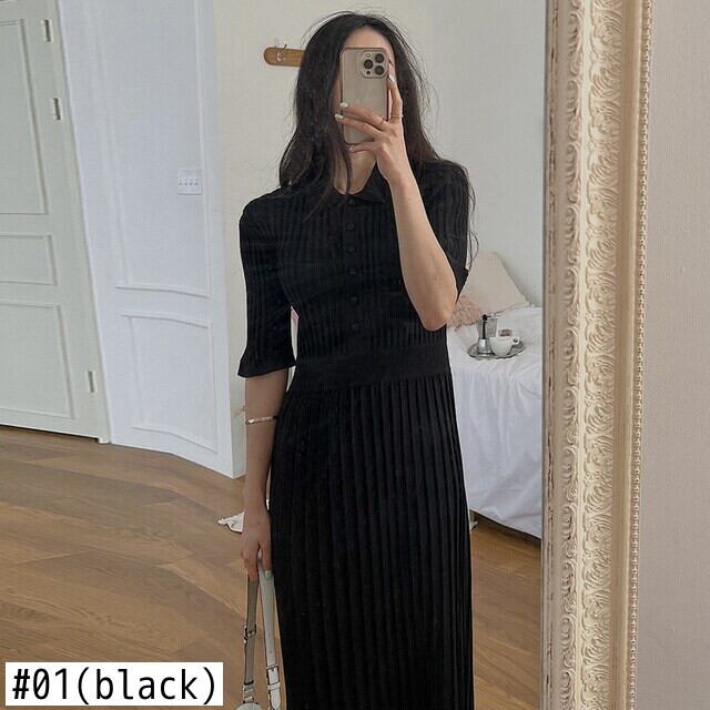 【EWQ】プリーツニットワンピース ラプル 無地 半袖 レディース ニットワンピース 夏潮 Vestido Y7685 ショート ハーフスリーブ サマー 夏物 ドレス ソリッドカラー