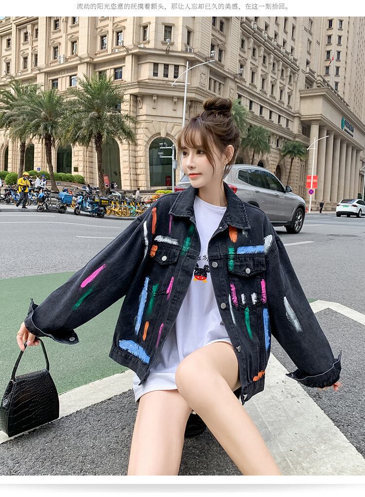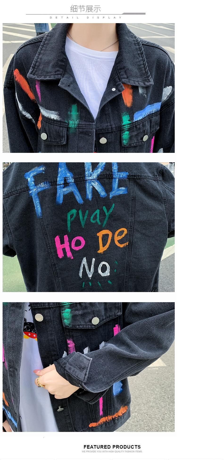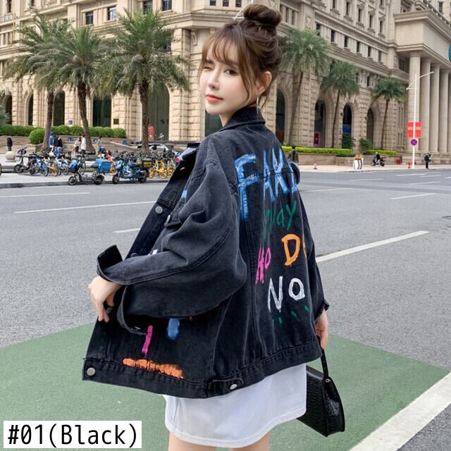 [EWQ] レター コントラスト カラー デニム ジャケット レディース ポケット ロング スリーブ コート 春 秋 トレンド コート 16Y6663 長袖 スプリング 春物 オータム 秋物