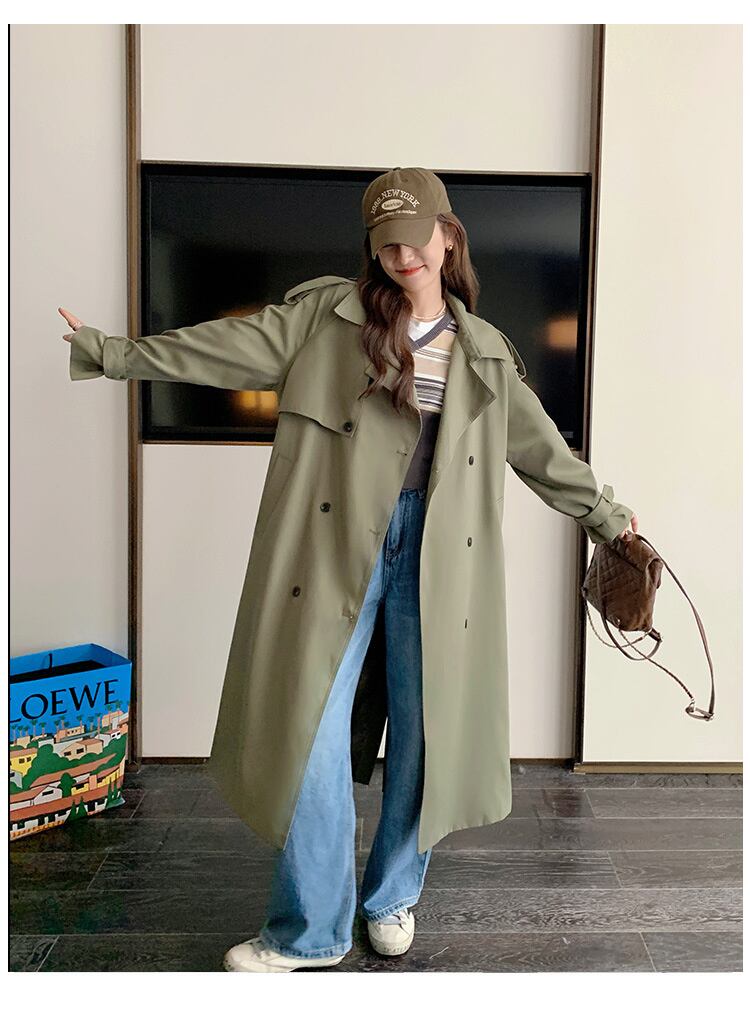 [EWQ] レディース ダブルブレスト ミニマリスト アーミーグリーン ウインドブレーカー コート 春 秋 潮 トレンチコート アウター スプリング 春物 オータム 秋物