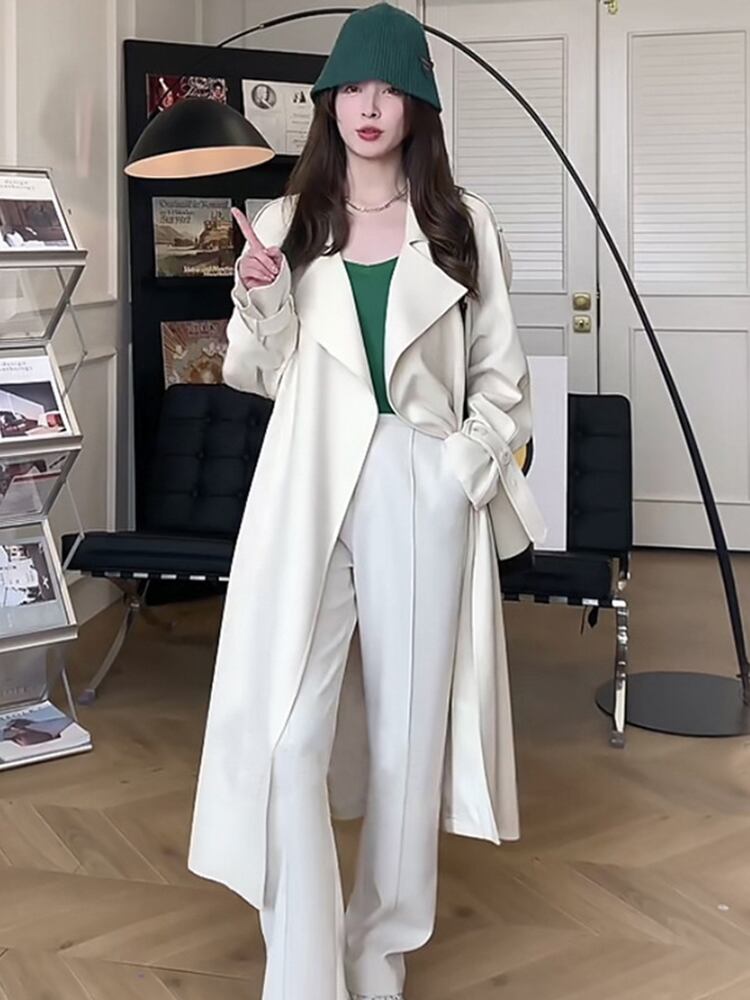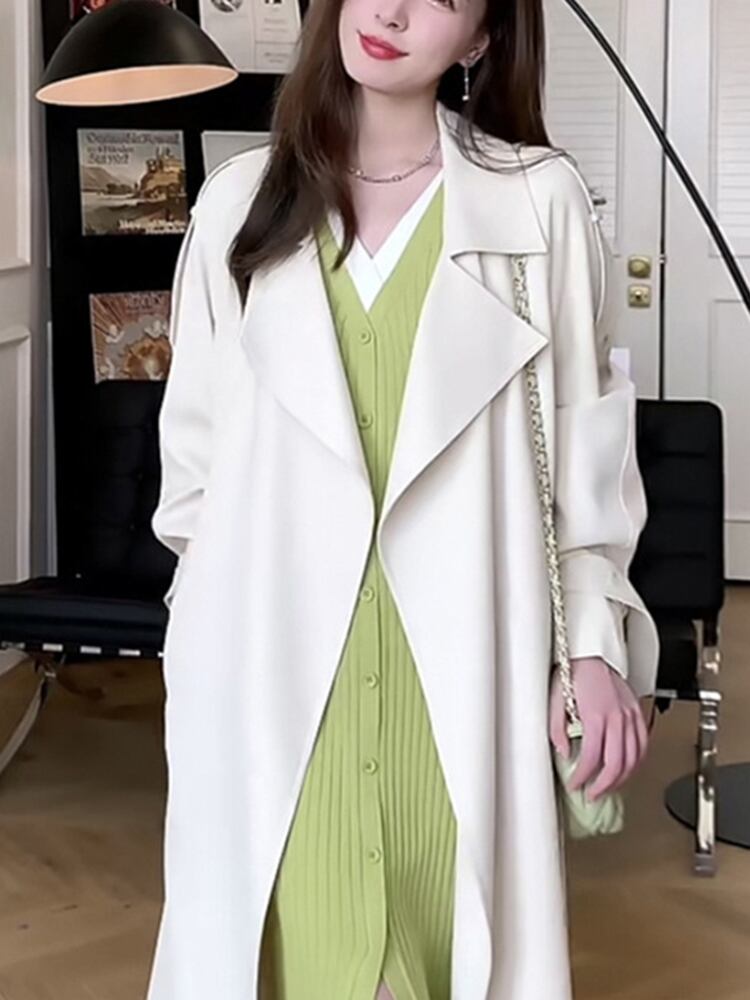 [EWQ] ホワイト ウインドブレーカー コート レディース バンデージ 無地 オープンステッチ トレンチ ジャケット 春 秋 ルーズ アウター 16Y7488 スプリング 春物 オータム 秋物 ソリッドカラー