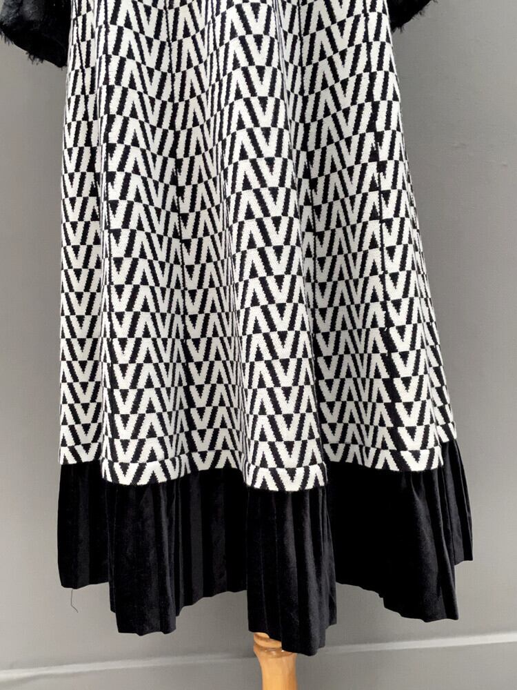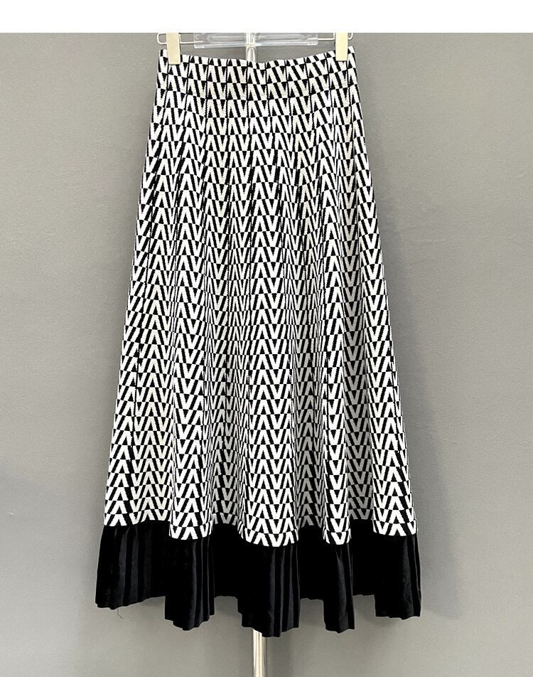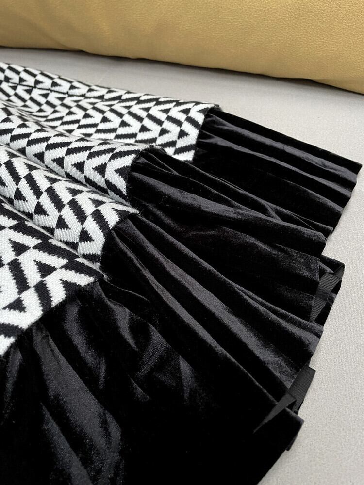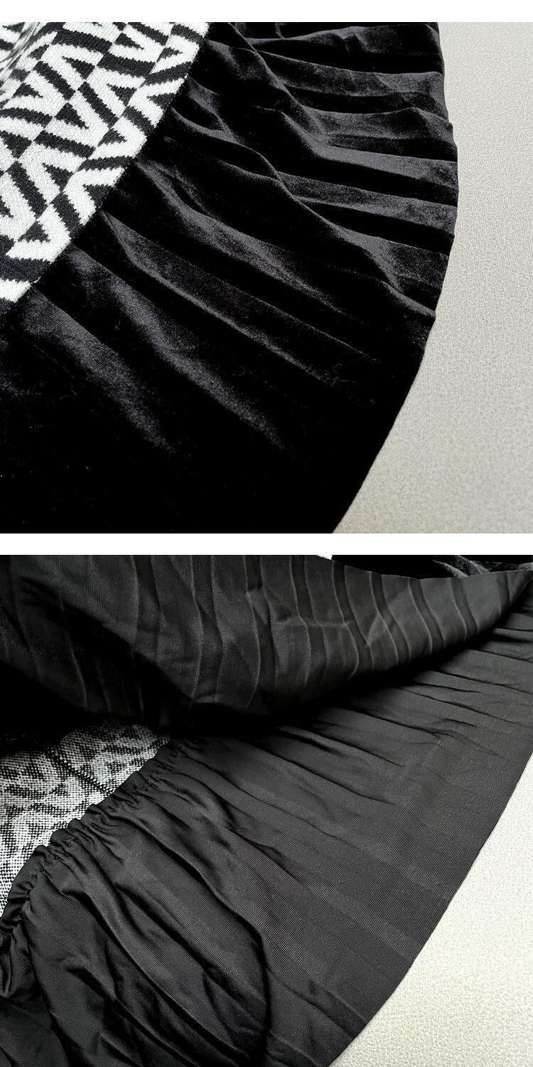 [EWQ] ベルベットチェック柄スプライス A ラインスカート弾性ウエストソフトニットスカート春秋ファルダ エラスティック 伸縮 スプリング 春物 オータム 秋物 Aライン