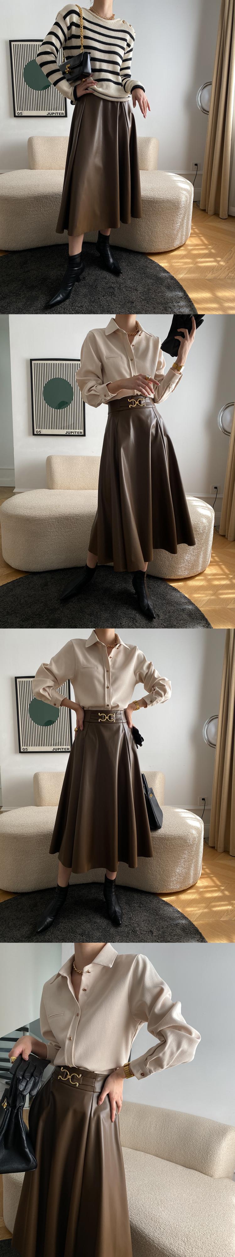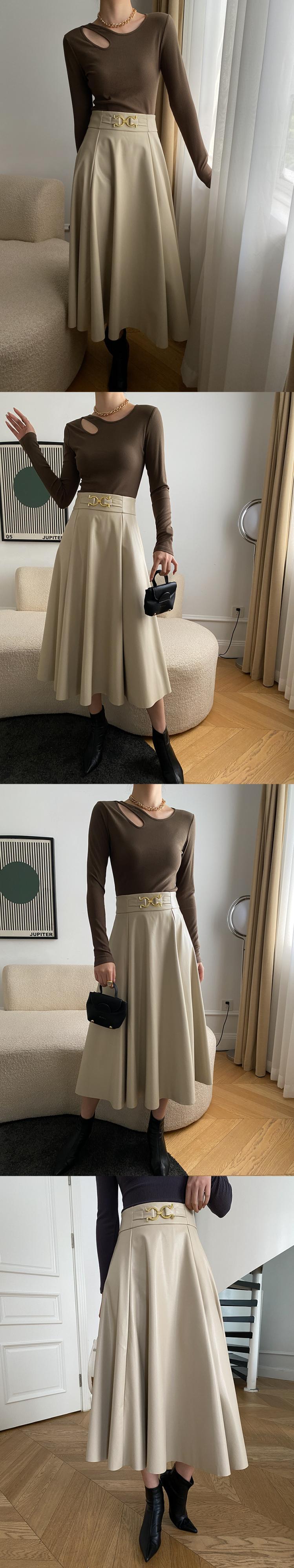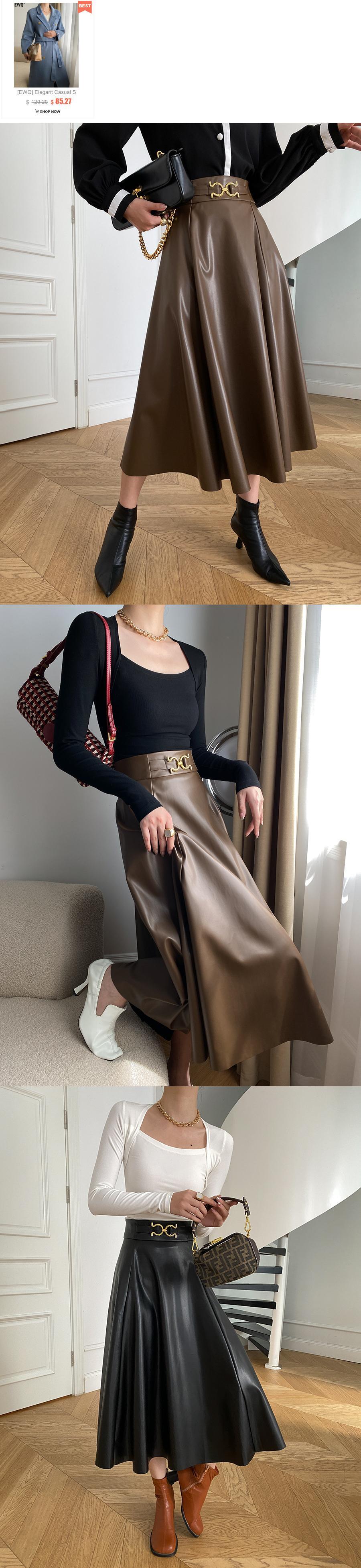 【EWQ】メタルバックルウエストトレンドレザースカート春オールマッチファルダモーダ16Y4081 スプリング 春物