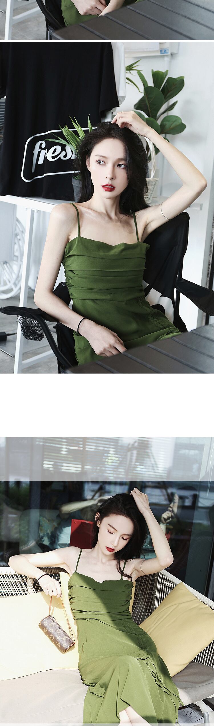 [EWQ] スリング ドレス ビーチ ホリデー 巾着 Vestido プリーツ A ライン ドレス 春 夏 潮 乗った スプリング 春物 サマー 夏物 Aライン