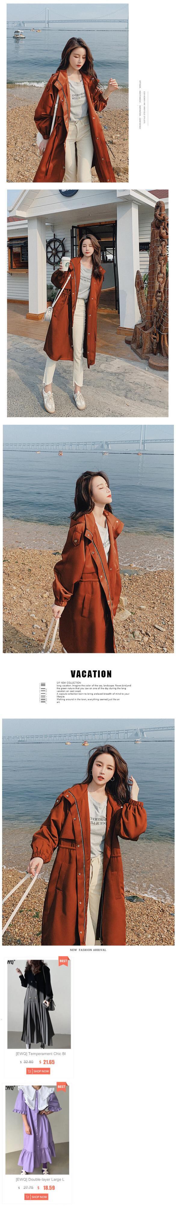 [EWQ] シンプルルーズロングフード付きウインドブレーカー春冬長袖ジッパー Felame グリーンオーバーコート 16Y4679 スプリング 春物 ウィンター 冬物