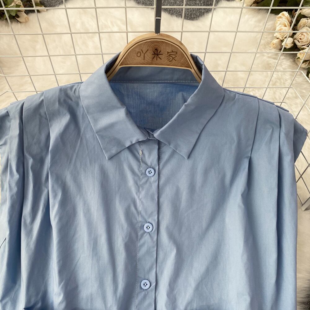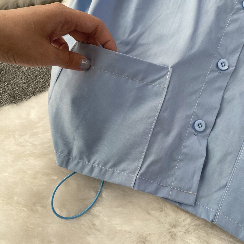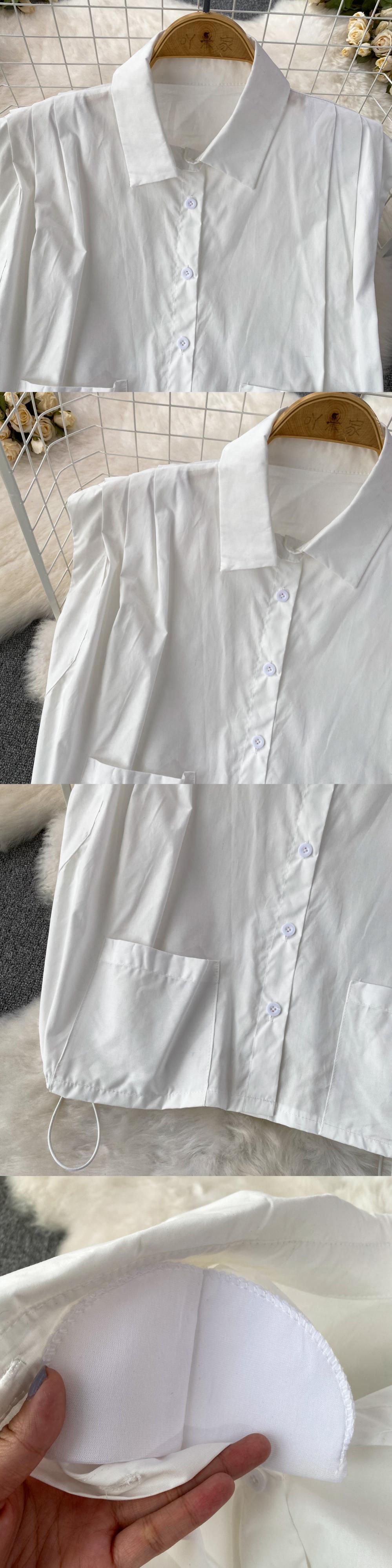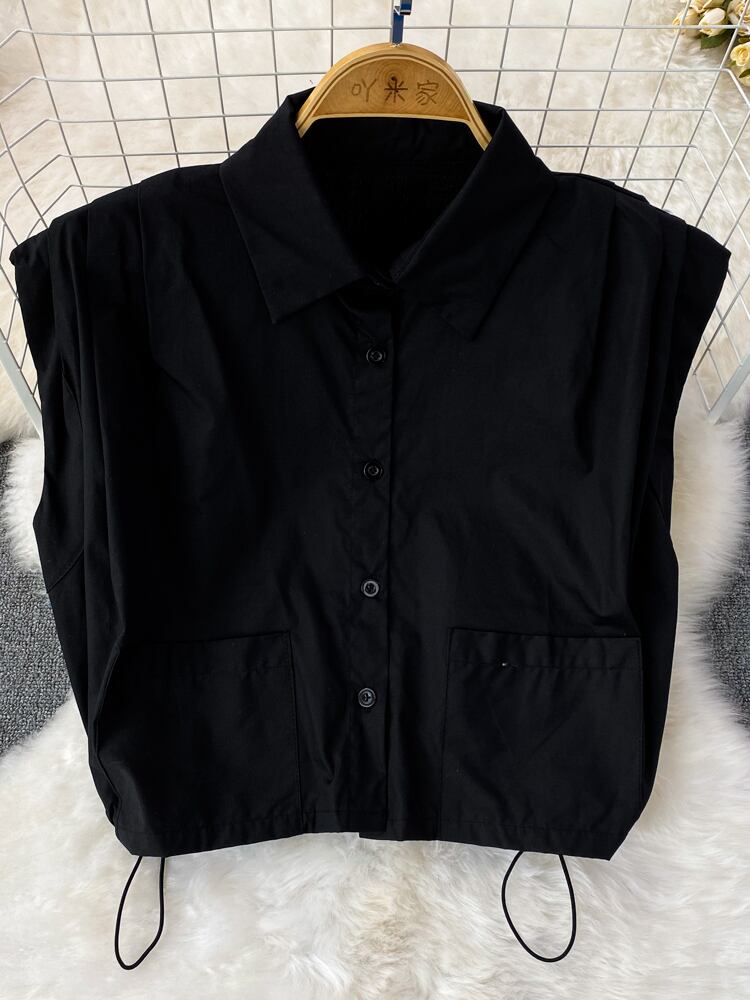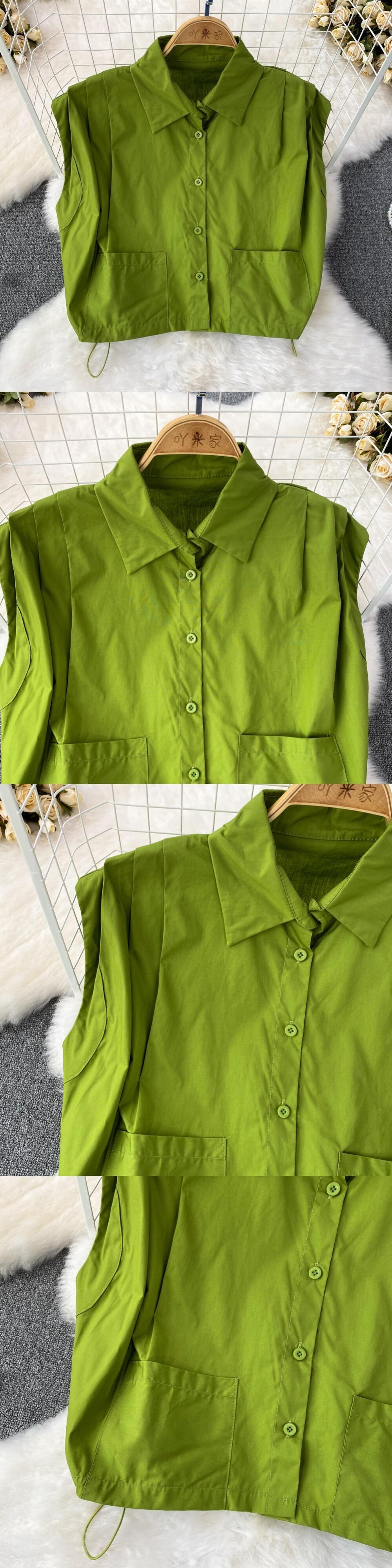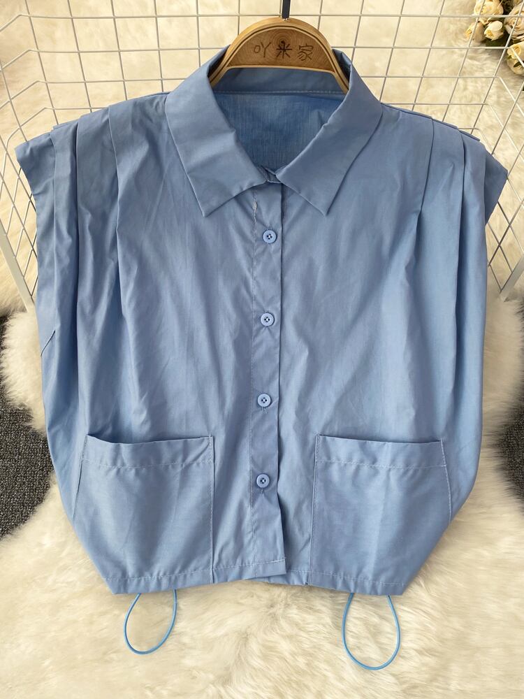 [EWQ] レディース ノースリーブ ラプル シャツ ポケット シングル ブレスト 無地 ドローストリング ブラウス トップ サマー タイド トップ 7846 夏物 ソリッドカラー