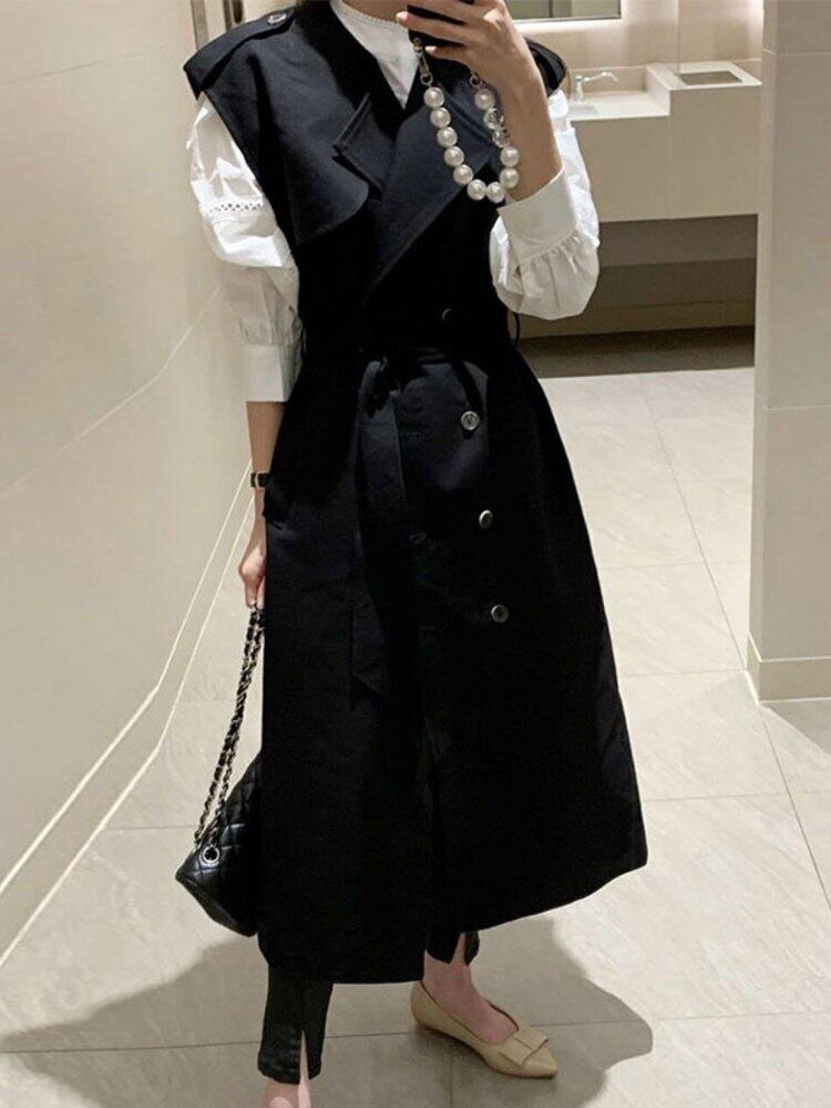 [EWQ] ノースリーブダブルブレストベルトウインドブレーカーコート春ターンダウン襟トレンチコート生き抜く 16Y581 スプリング 春物 ハーネス