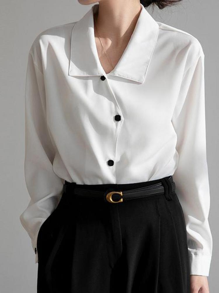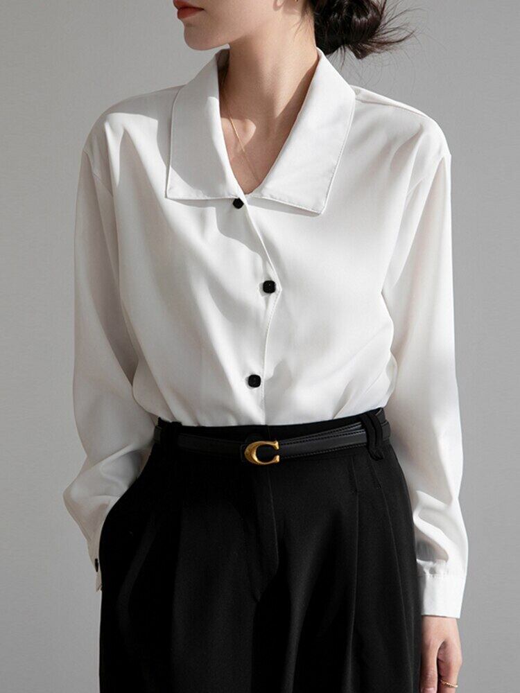 [EWQ] イレギュラー シングルブレスト シャツ レディース 長袖 ルーズ ラプル トップス 春秋 トップス 26 ロング スプリング 春物 オータム 秋物