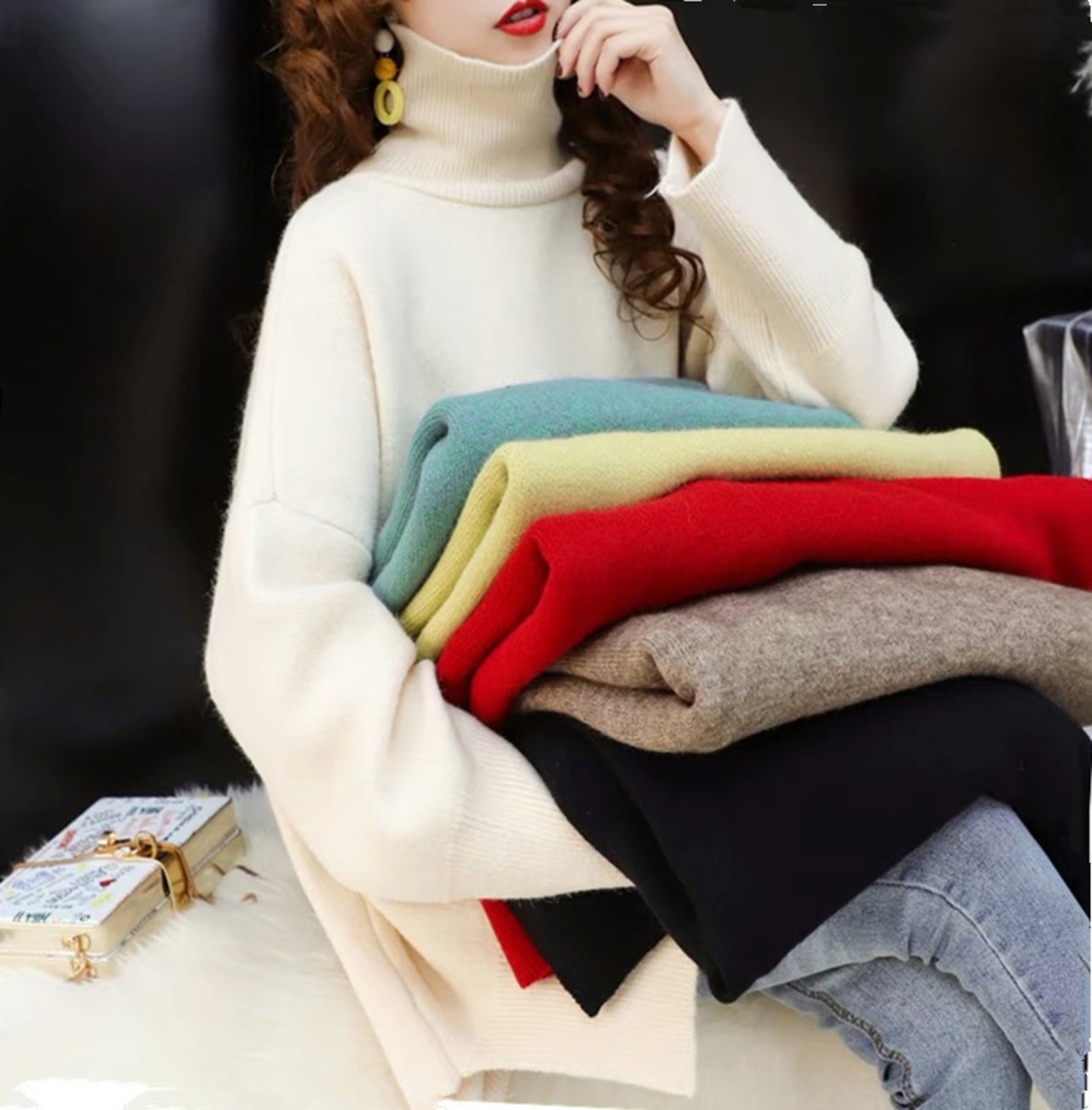 [EWQ] シック イエロー ニット プルオーバー レディース 春 冬 タートルネック ゆったり 長袖 セーター 16E31 ロング スプリング 春物 ウィンター 冬物