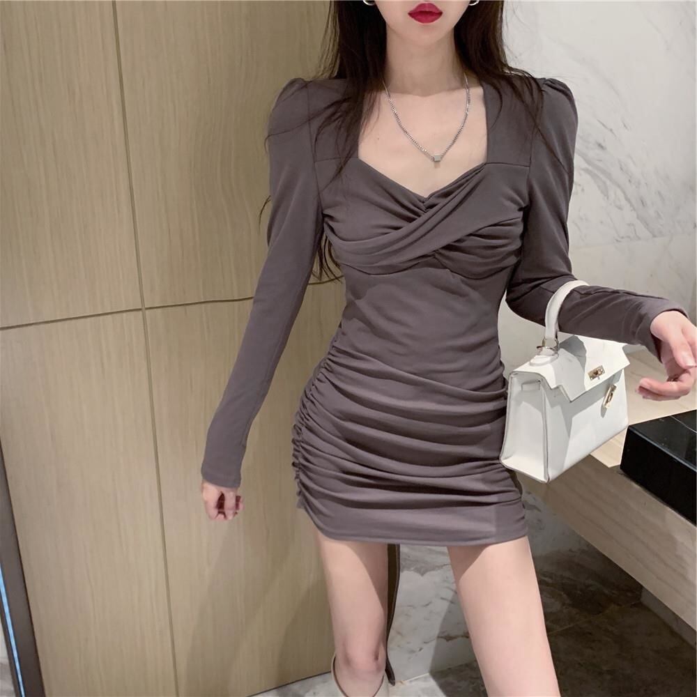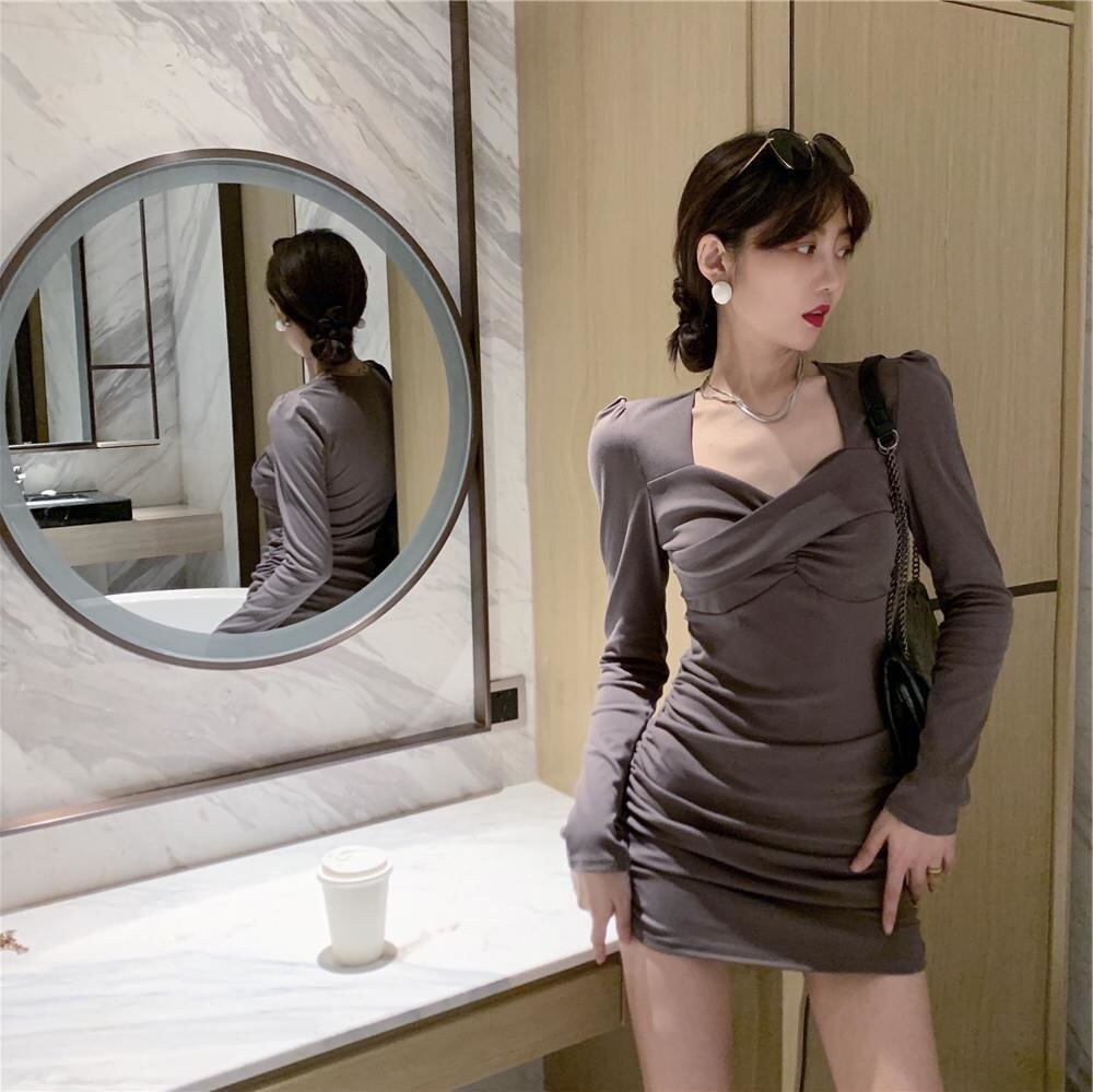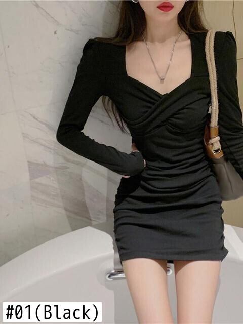 【EWQ】ランウェイ ワンピース シック ヒップ 胸元 ラップ トレンド レディース スリム ワンピース 気質 ブラック 春 Y7308 スプリング 春物