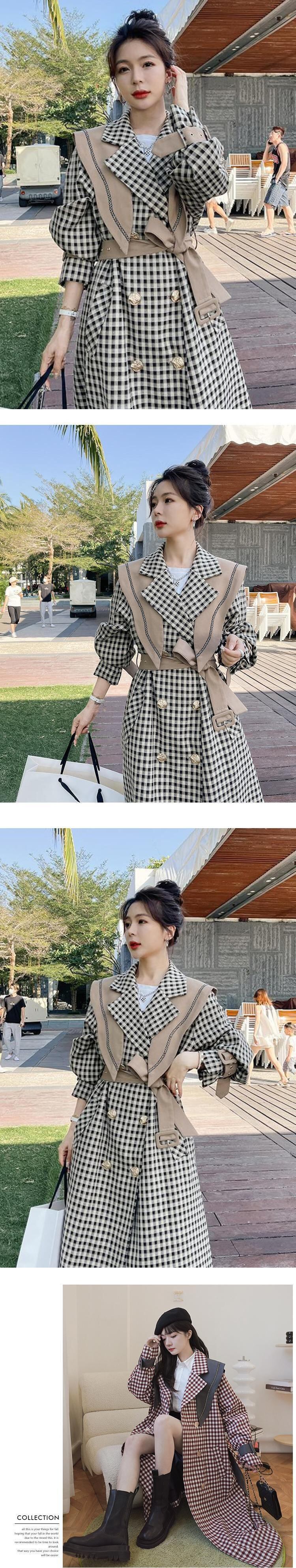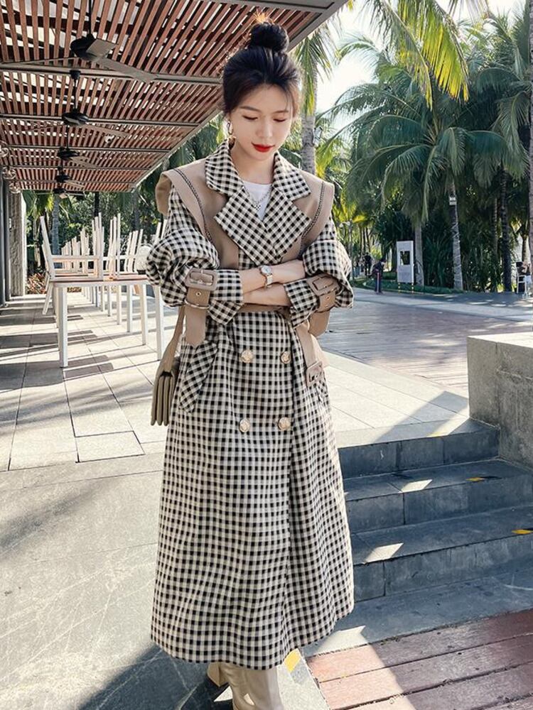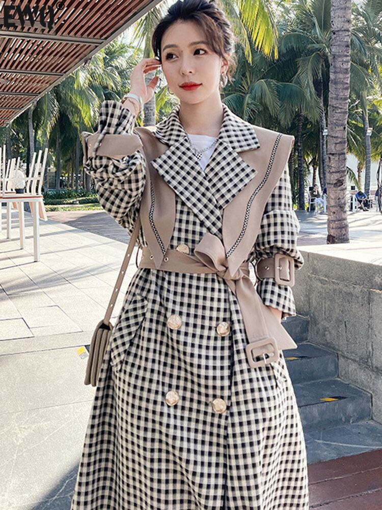 【EWQ】ターンダウンカラー ウインドブレーカー パッチワーク コントラストカラー ベルト ボタン レディース アウター トレンチコート アウター 春 スプリング 春物 ハーネス