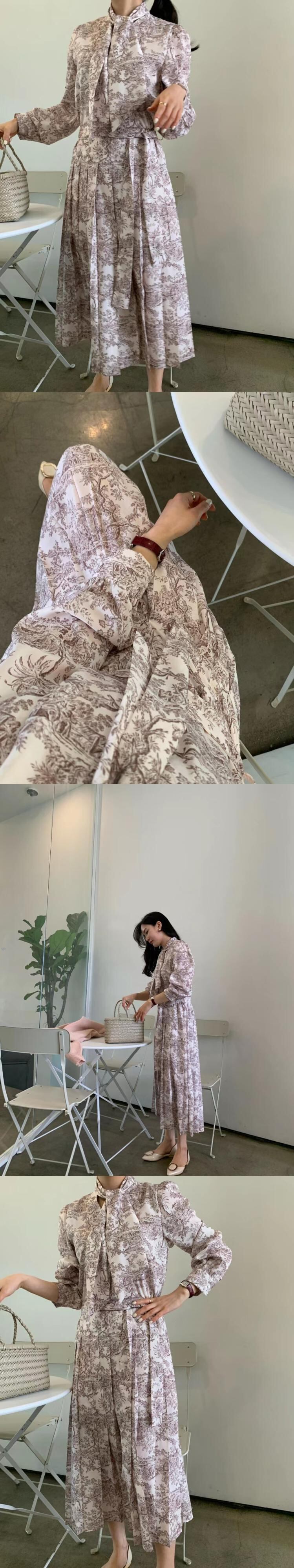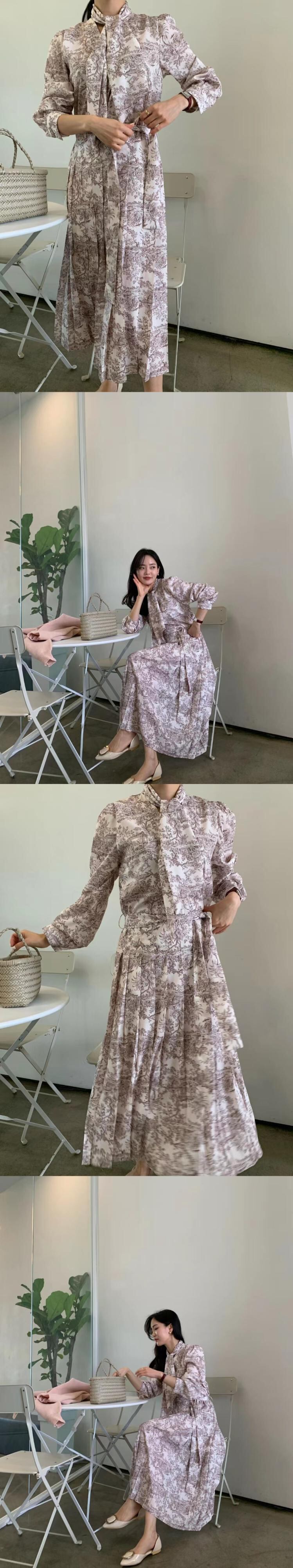 [EWQ] プリント レースアップ ドレス長袖ホルター タイ プリーツ ドレス春秋服 7178 ロング スプリング 春物 オータム 秋物