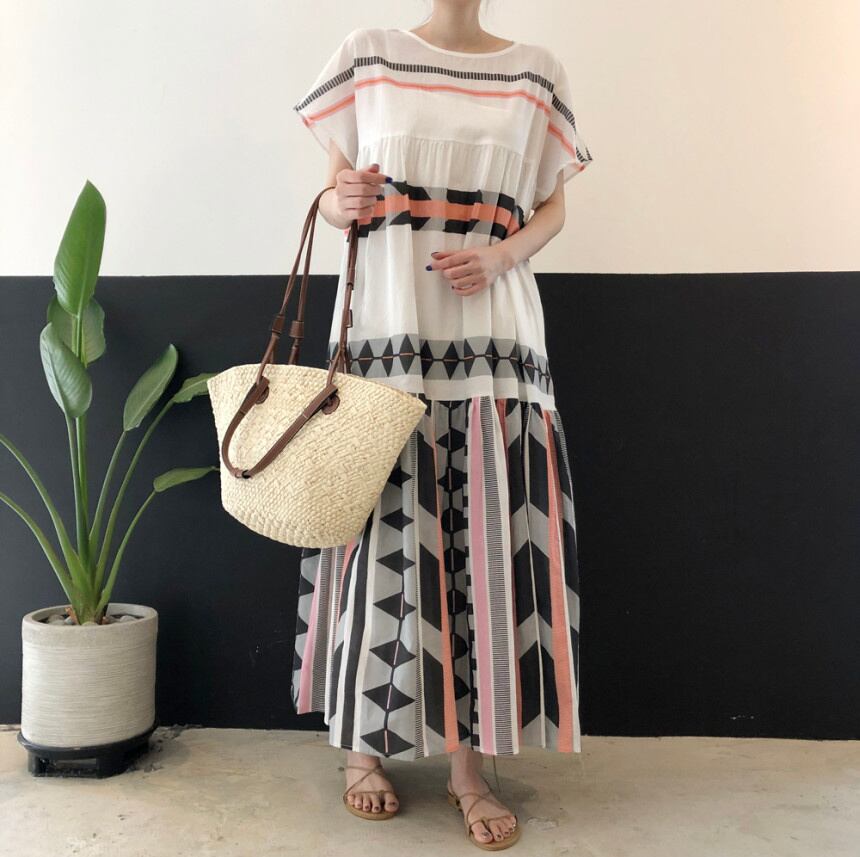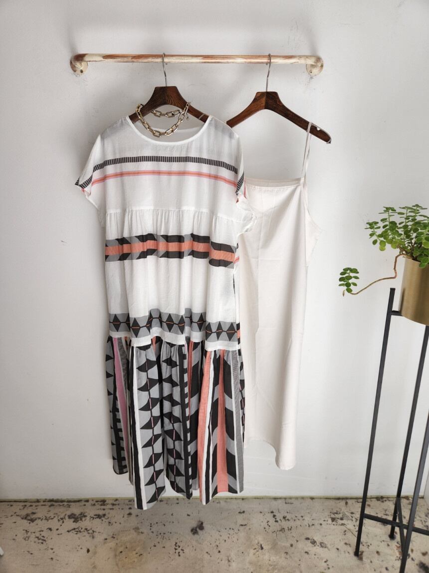 [EWQ] レディース 半袖 プリント コントラスト Tシャツワンピース ノースリーブ スリングドレス 2点セット 春夏 627 ショート ハーフスリーブ スプリング 春物 サマー 夏物