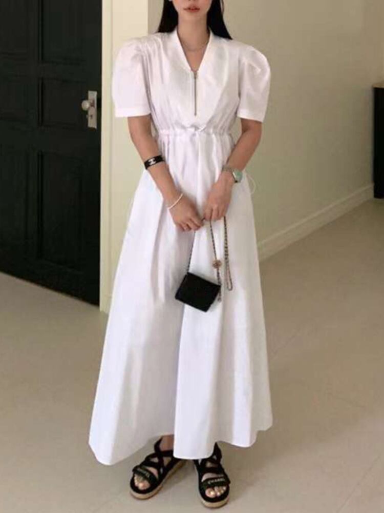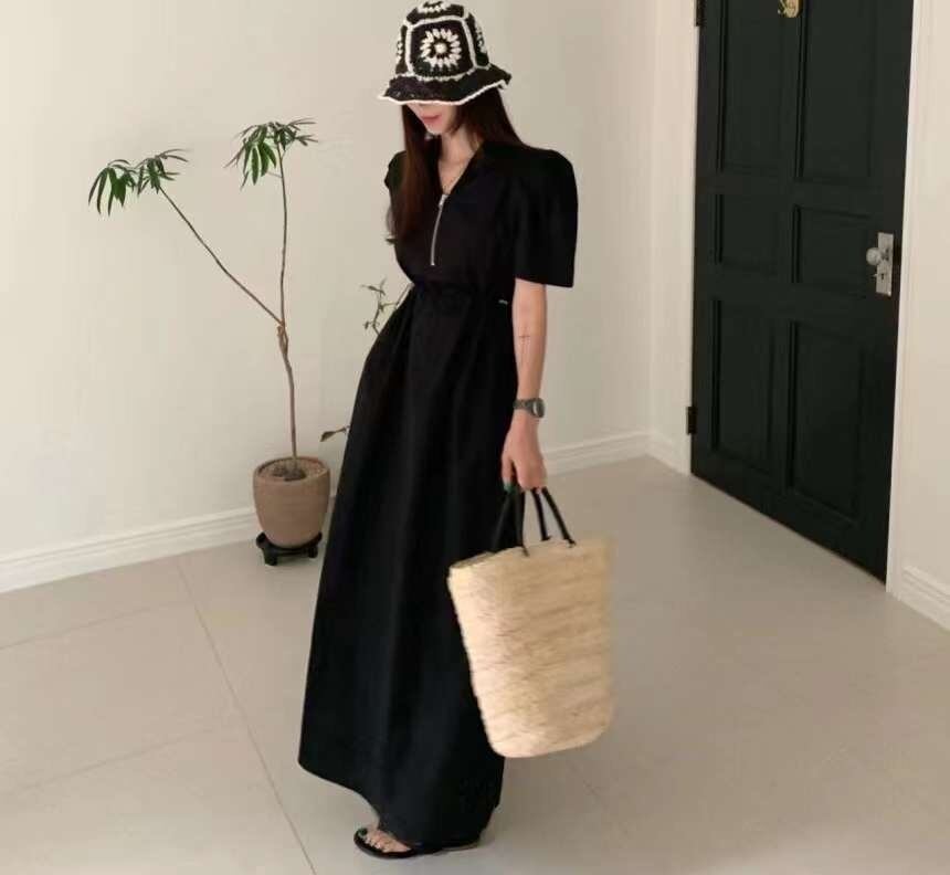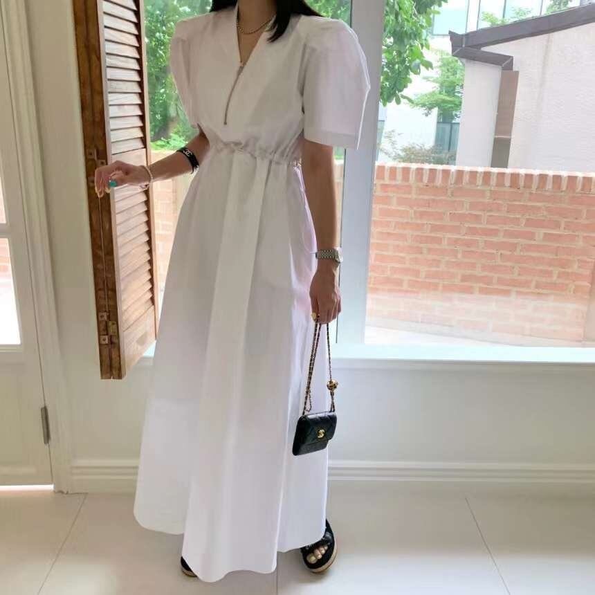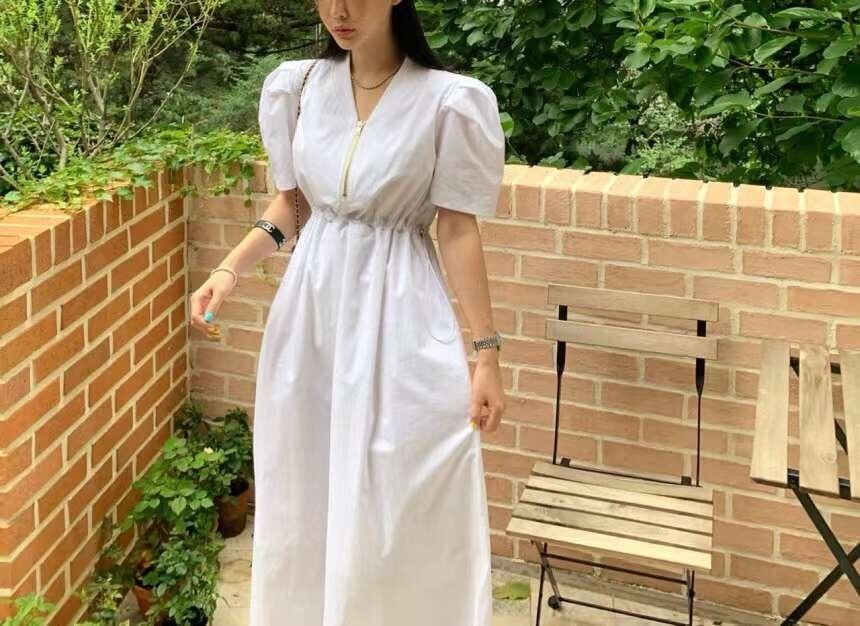[EWQ] V ネック コントラスト チェック柄ドレス ウエスト スリム半袖チェック ジッパー ドレス夏潮 Vestido 7940 ショート ハーフスリーブ サマー 夏物 Vネック